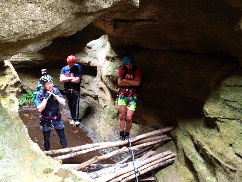 The next drop was scrambled down pretty easily and then were were at the dodgy log anchor