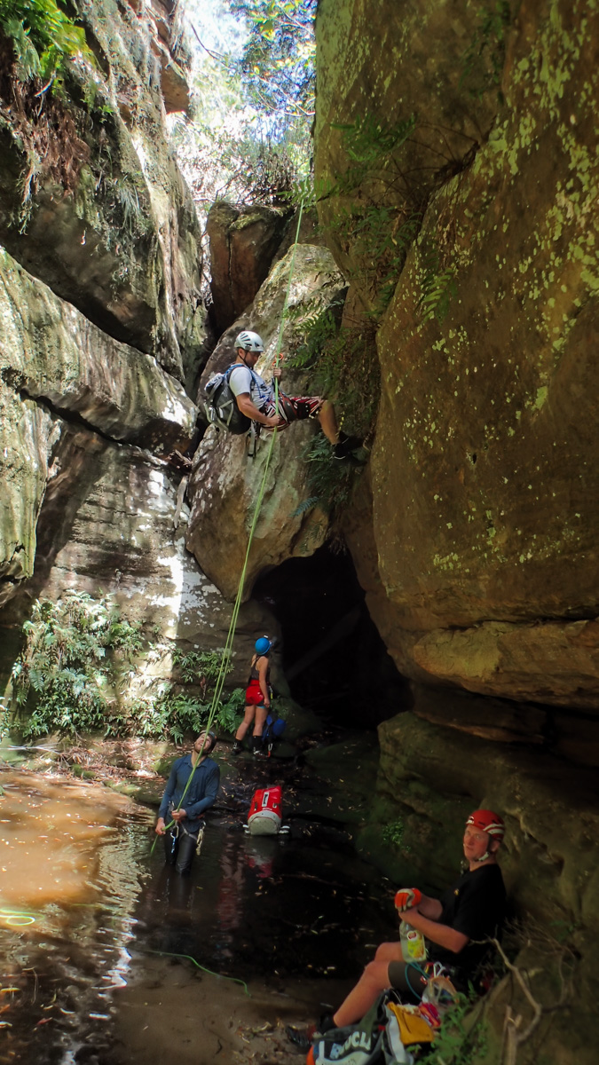 Anyhoo a ragtag group of adventurous folk meet up in the camp ground, the plan is to ride our bikes down the Wolgan river maintenance trail then stash the bikes and find a way up the hill. A bit of asking around had us confident our pass was viable and the bikes, in theory would make the haul down and back up the river faster, if not easier.