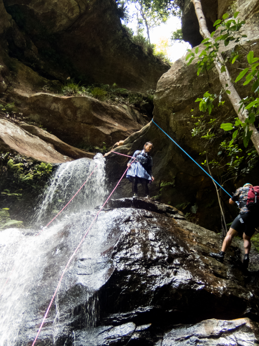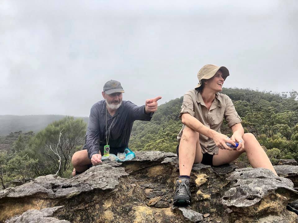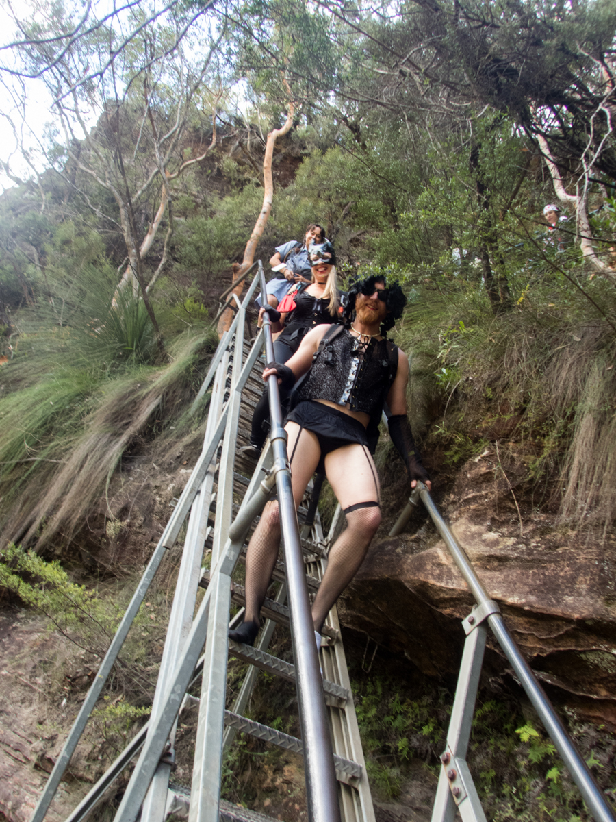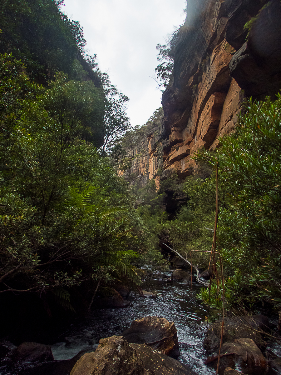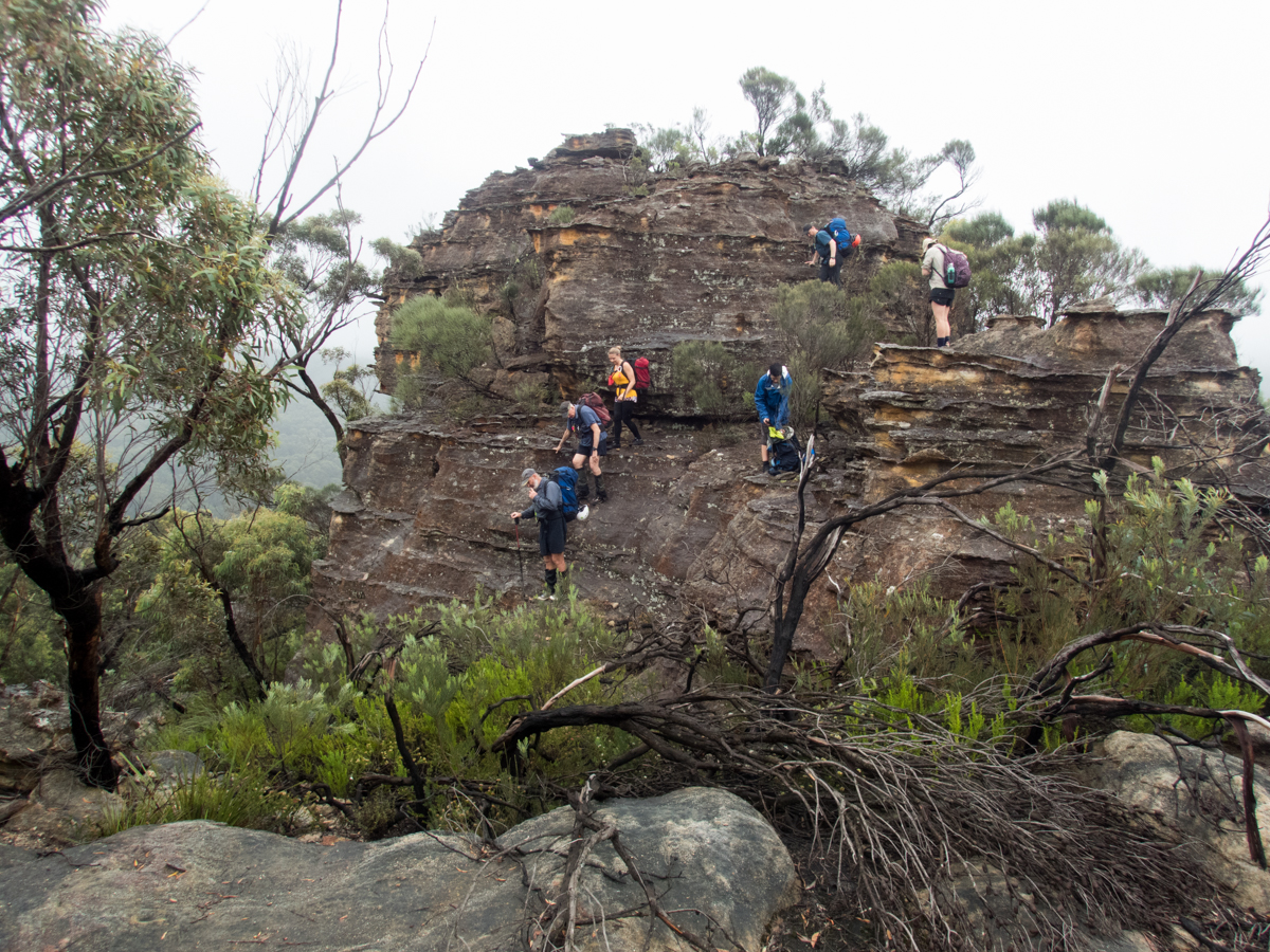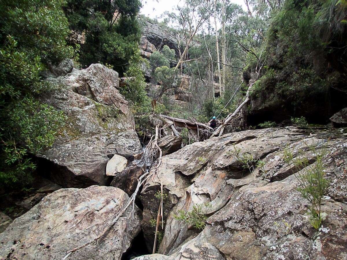 In high spirits we skipped out to the end of the fire trail and had no difficulty finding a pass down through the cliff.