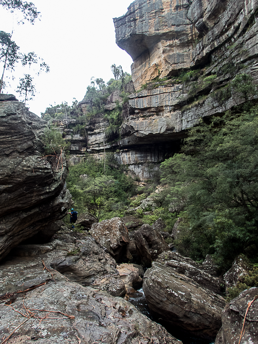 An hour later we’d barely gone 600m and light was fading. I wasn’t 100% sure where the famed camp cave was so we made the decision to bunk down in the next viable overhang to shelter from the predicted overnight moisture.