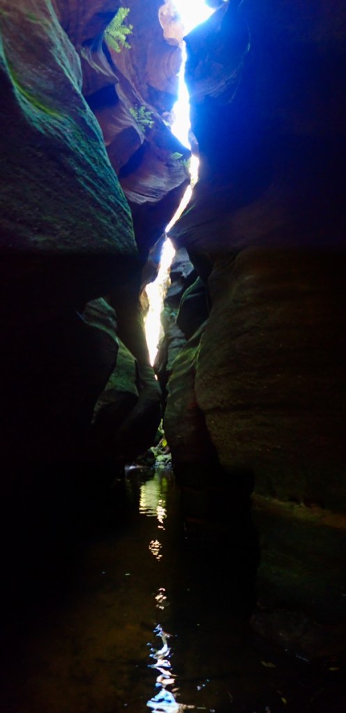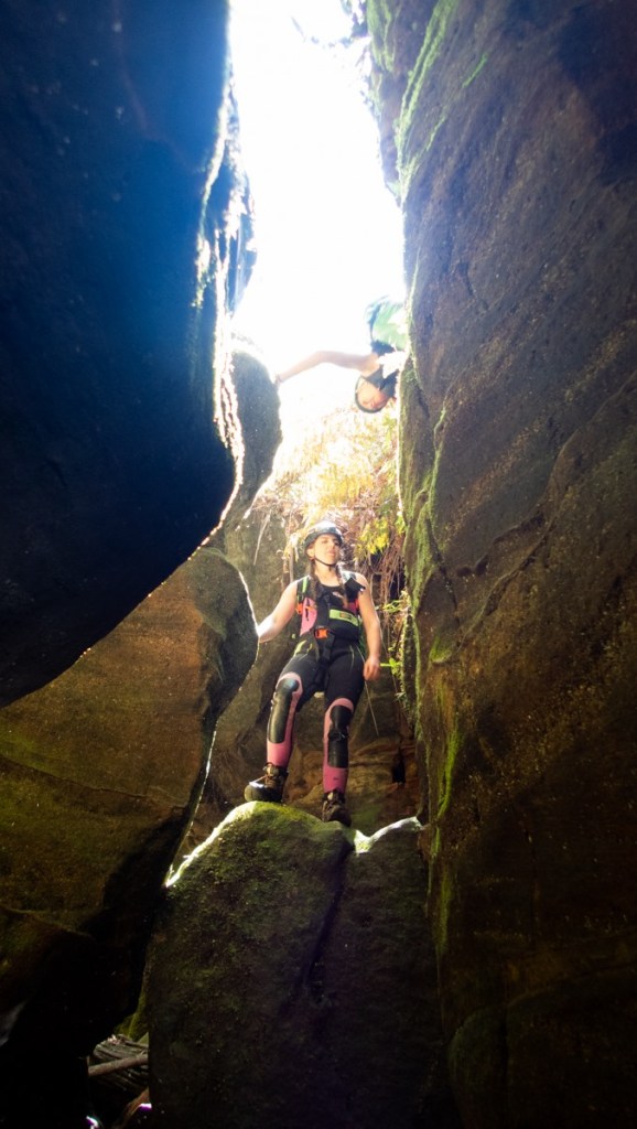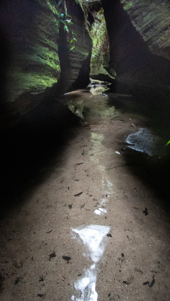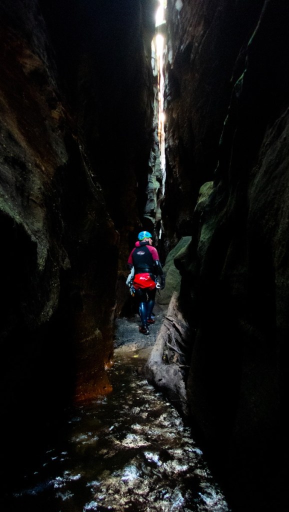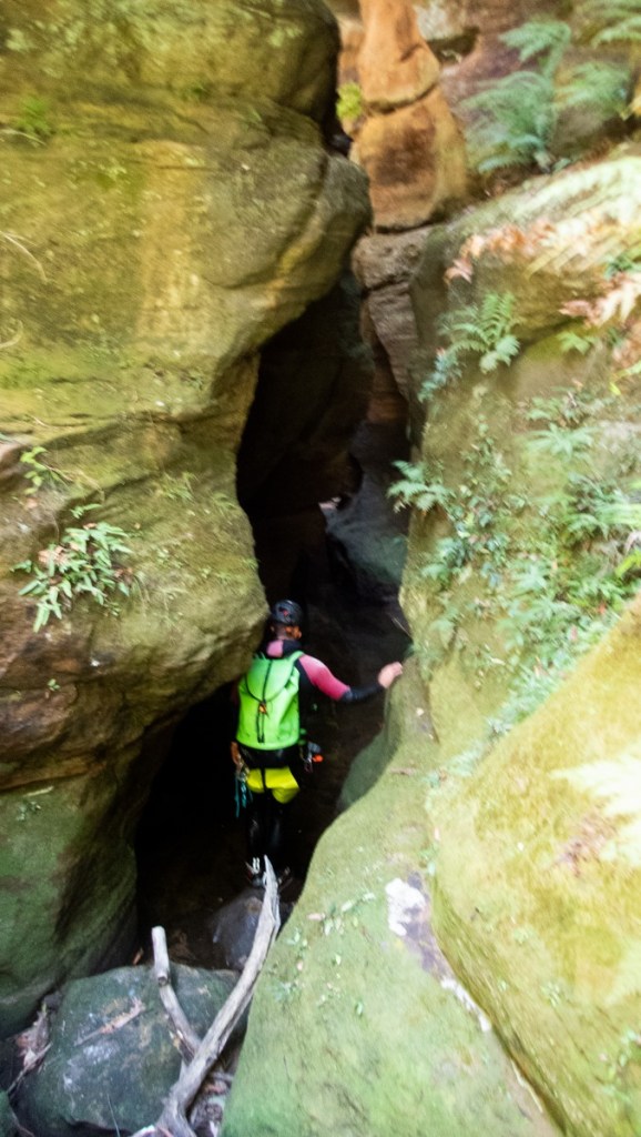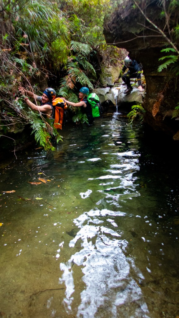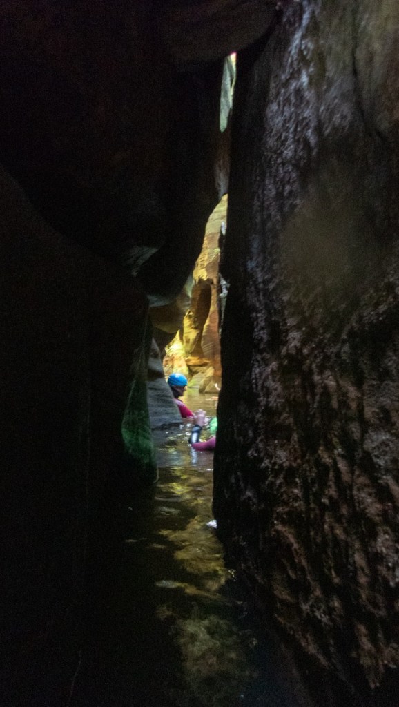 The swim into the first “Duck under” was little more than a deep wade. There followed an impromptu chorus of Ooooh shit it’s cold. Which had Libby dubbing the trip the Whingee Whungee trip.