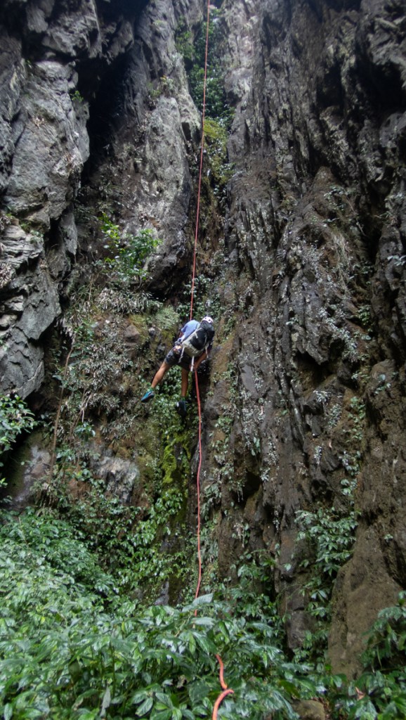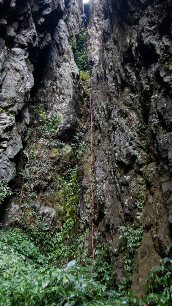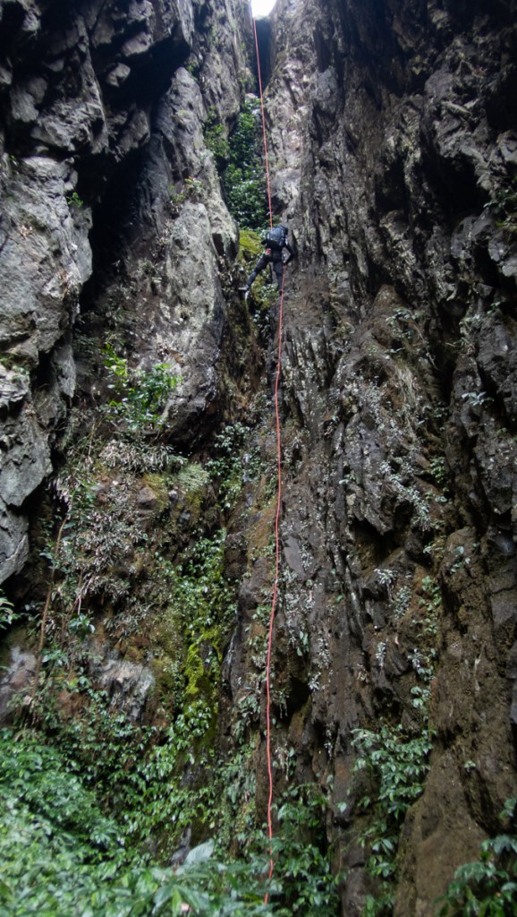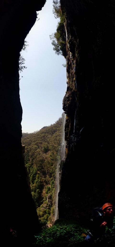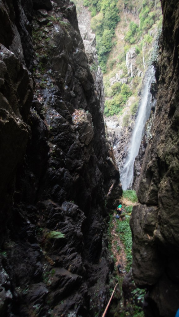 Jamie was just heading down to start setting up the next anchor when we heard one of the most horrid sounds I’ve ever heard, the unmistakable sound of a body falling onto rock. There followed silence. It probably lasted a fraction of a second but it seemed like an eternity. My heart sank as I feared the worst. We were 60m down a 150m waterfall. Then a scream and a god-awful moan.