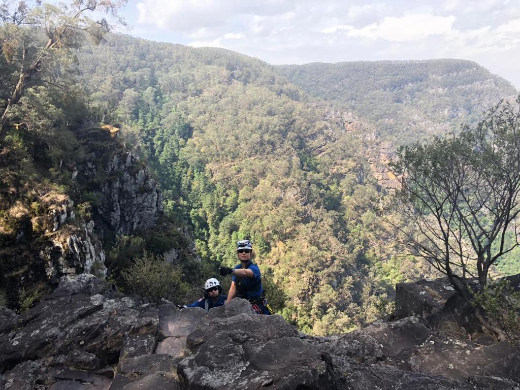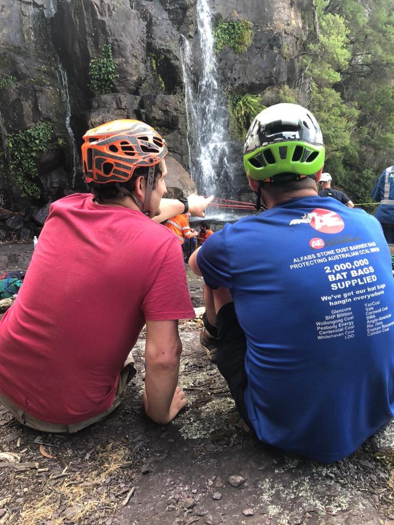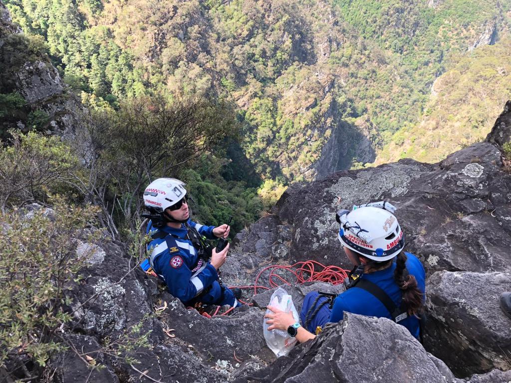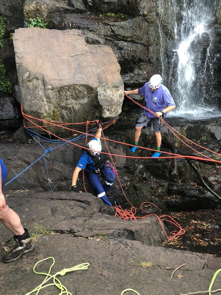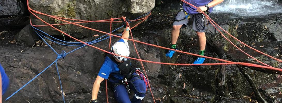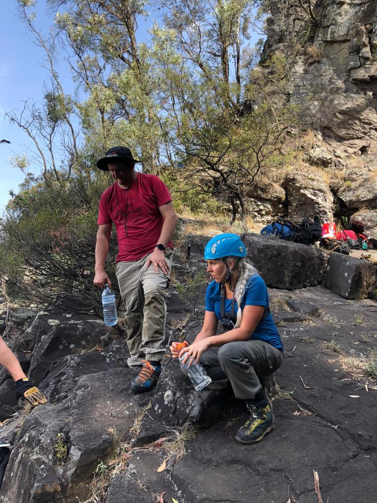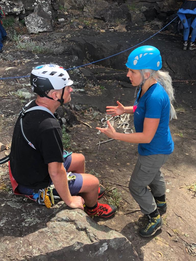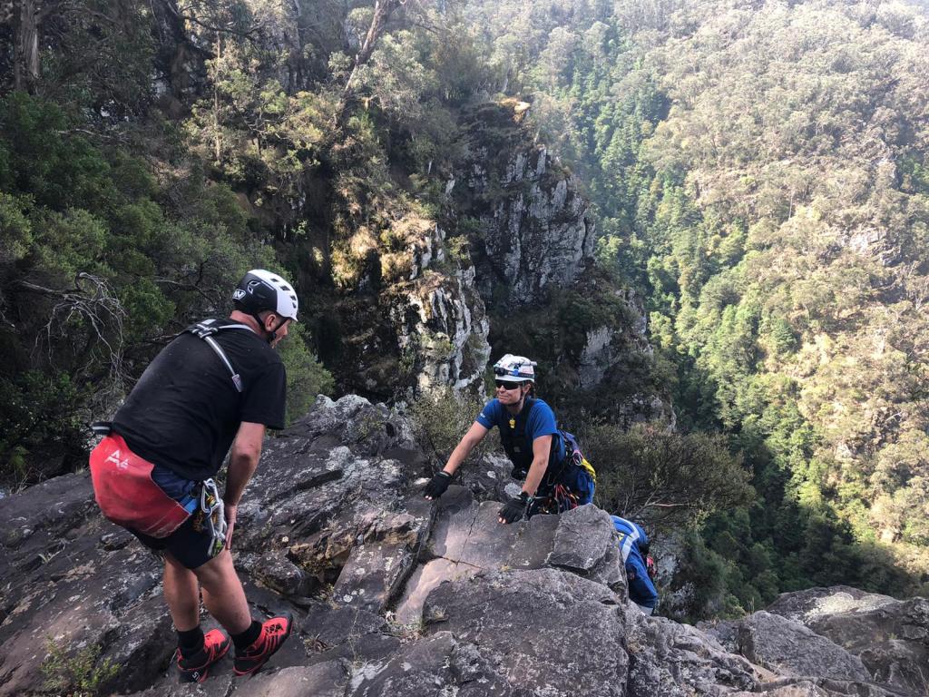 - Stay calm and talk through options before committing yourselves to a course of action that might not be the best one. Your first priority is making sure you are not putting your self in danger or making things more complicated for rescuers. We very nearly committed ourselves to the next abseil. Jamie’s paramedics training and my experience as a workplace responder meant we were able to pull back to discuss our plan and make the much better choice of ascending and approaching from above.