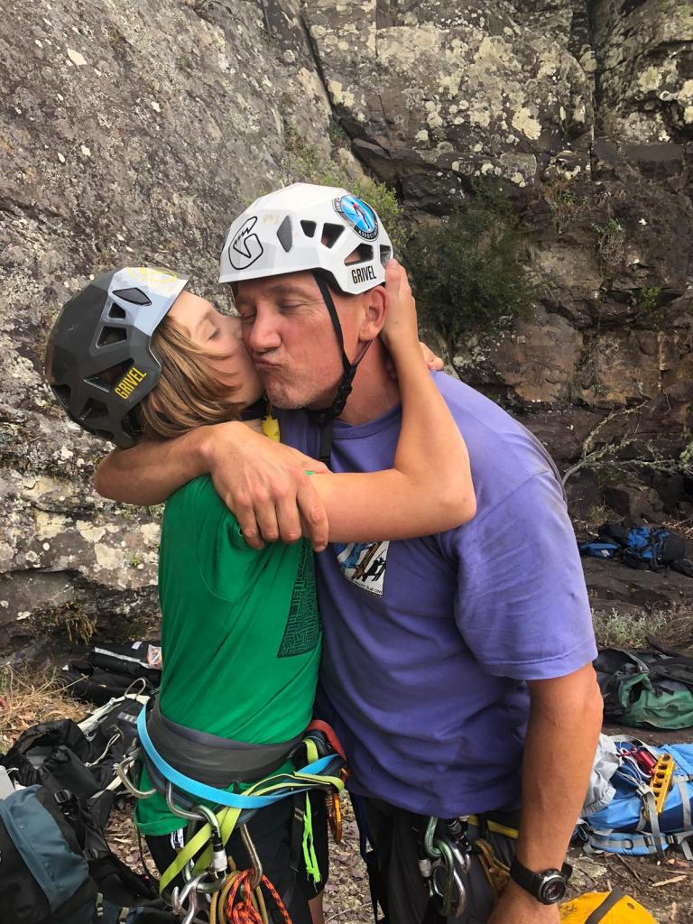A 55m prussik isn’t fun at the best of times so I tried to set him up with an assisted system where a little redirect meant by pulling on the rope from below in time with him stepping up I could give him a little help. Coordinating that is a bit harder than it sounds but eventually he got to the top.