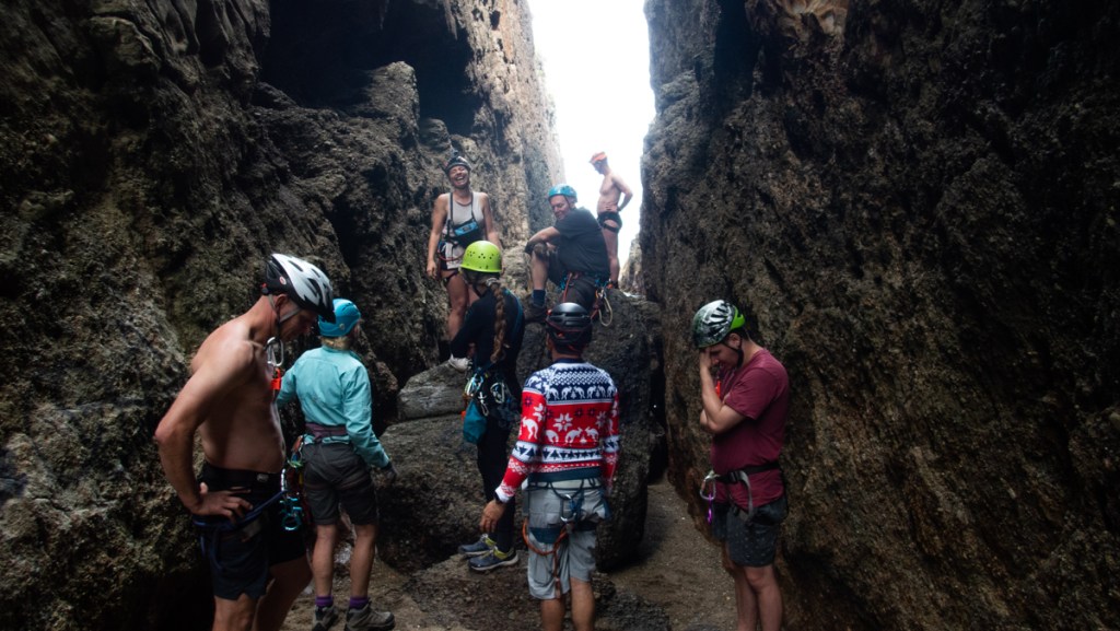 But with Laurence’s warning only myself, Matt and Della decided to give it a crack, with Gabby and Ev opting for a dry landing on the exit route and the rest waiting for us up top.