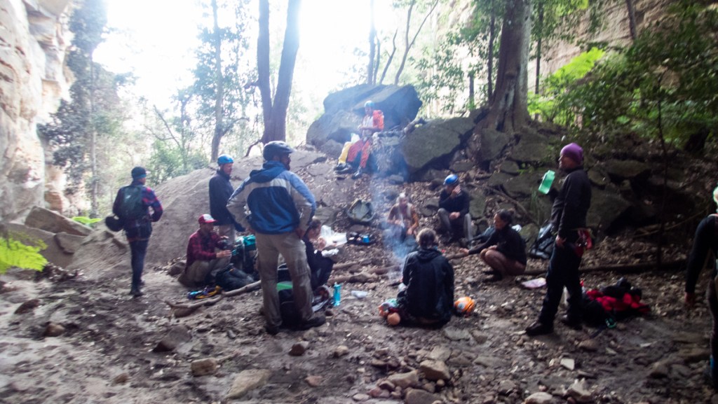 Regrouping at the end of the canyon we’re met by Jen who was unable to abseil due to injury so ducked around and got a little camp fire going. We enjoy some more banter and a bit of Kristos birthday cake that Hywaida had some how carted through the canyon without so much as smearing the icing.