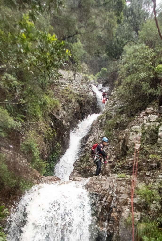 The rocks at Kanangra are always slippery and loose and the dampness added to this so we went slow and steady, setting up a small abseil to get to the first abseil.
