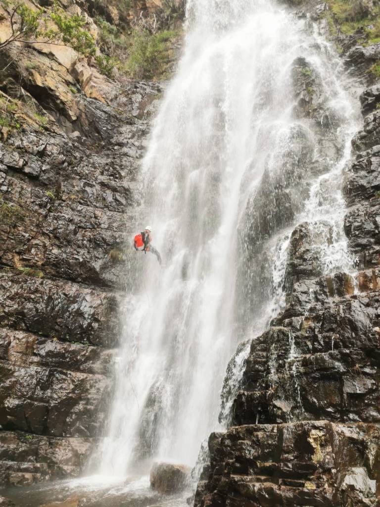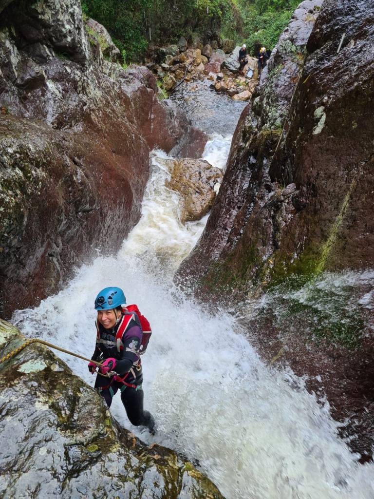 The others agree and we opt to do Kalang Falls instead. It is a bit more open with bigger stances between abseils. It’s usually done as a dry trip but has options so we could choose to get into the flow if it was safe.