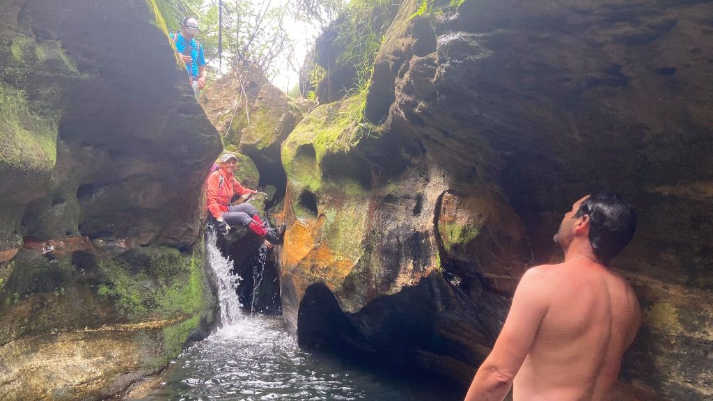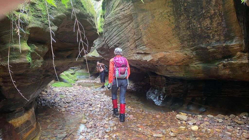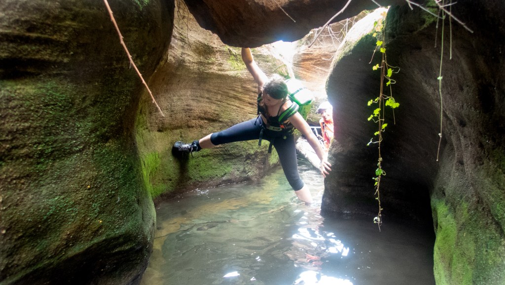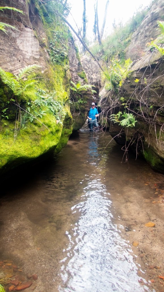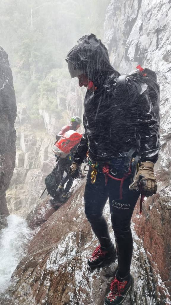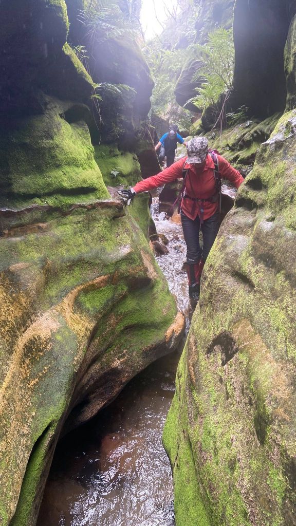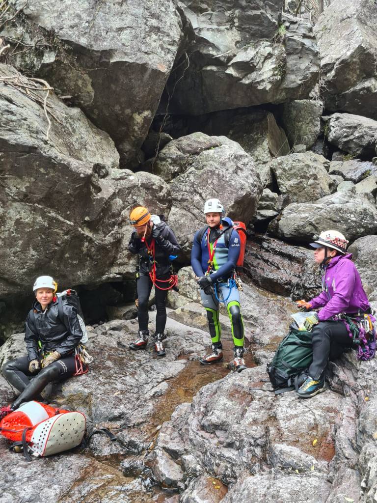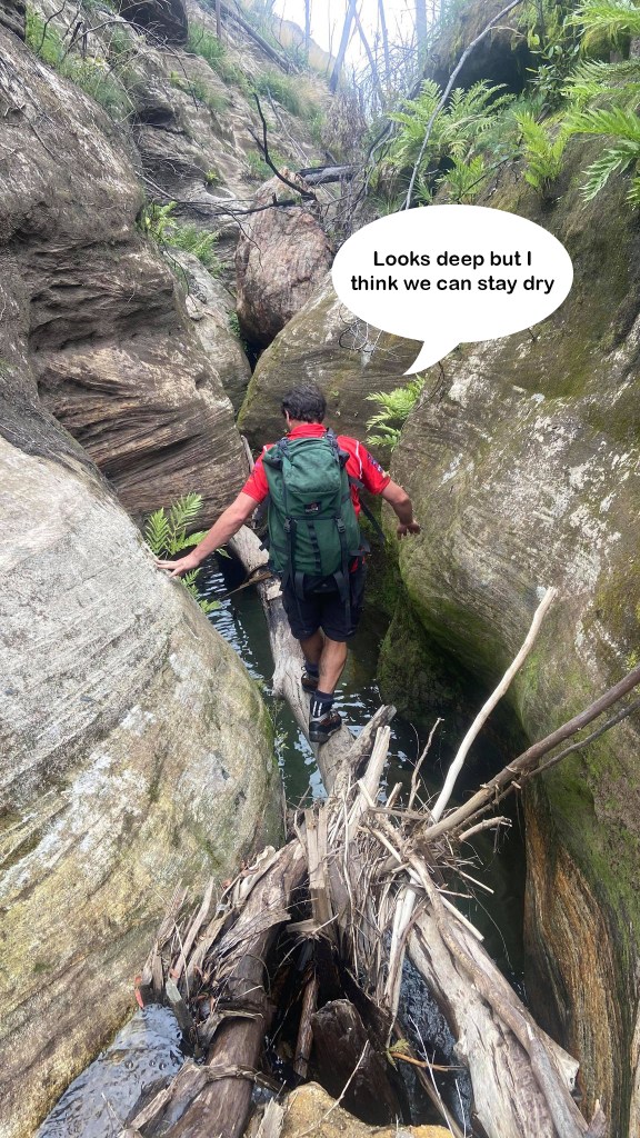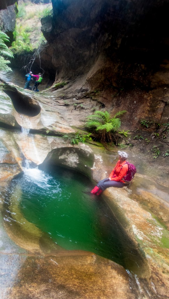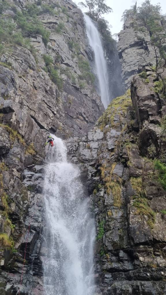 The slot has a bit of a reputation for projectiles. The top of P1 and the stance in between P1 and P2 are littered with loose rocks, anything from pebble size to large slabs. If you are heading in you need to make sure your group is extremely careful. It’s Kylies trip and I didn’t want to take over but I did stress no one was to move above P2 while people were on rope and we didn’t have an issue.