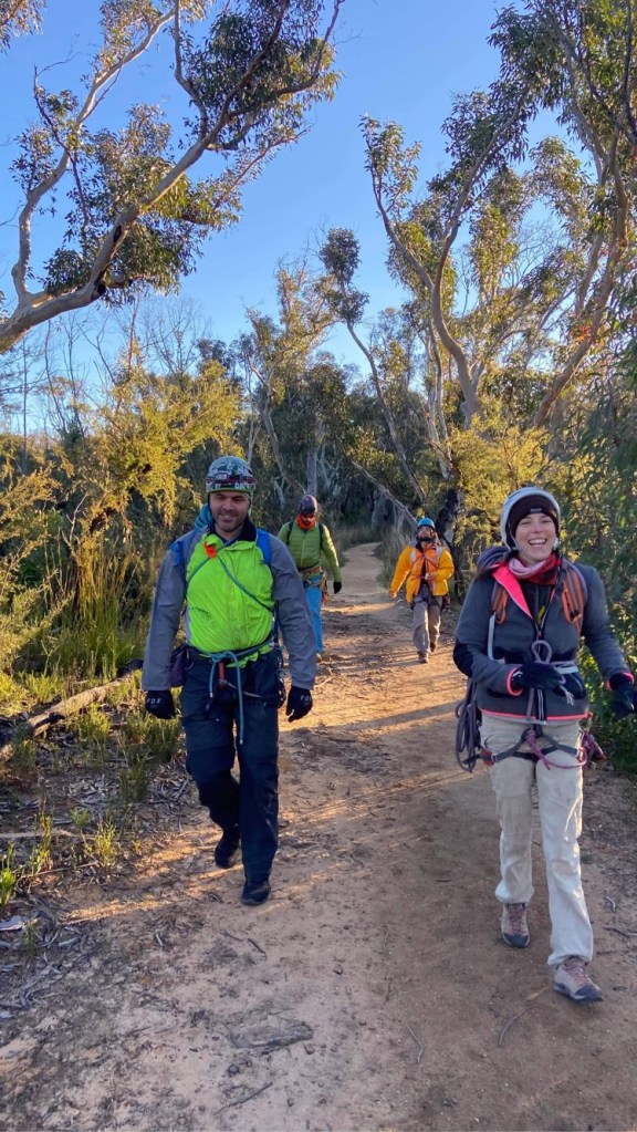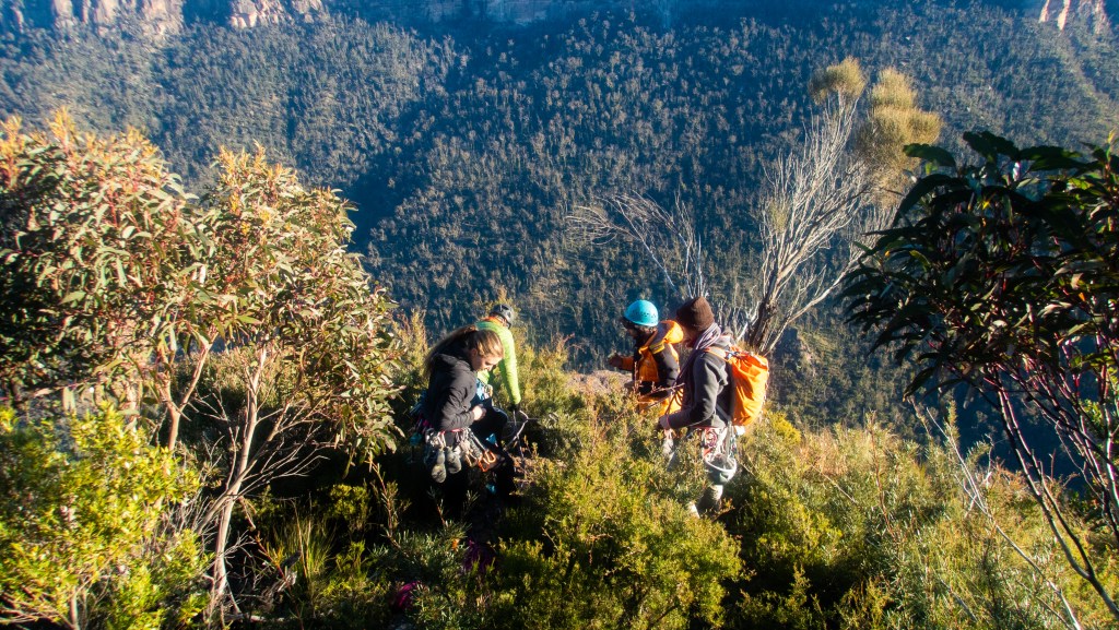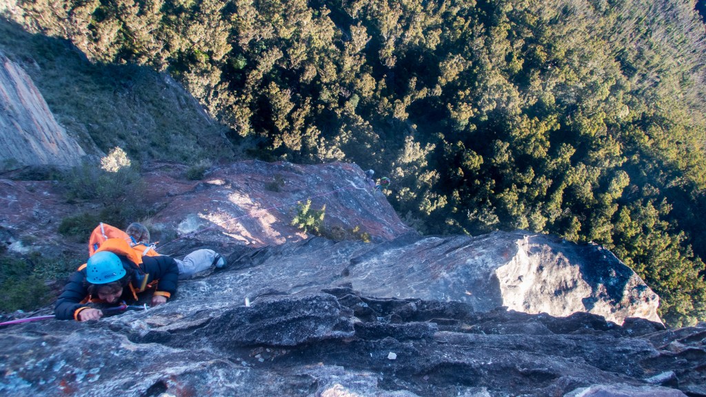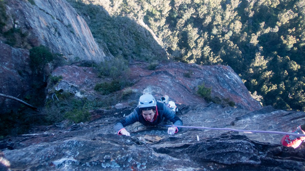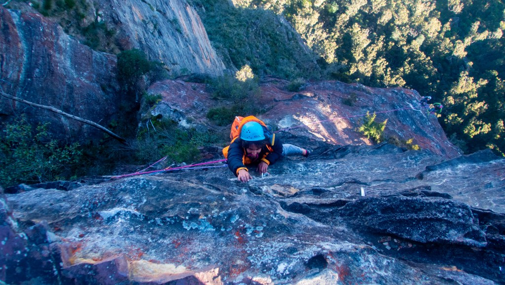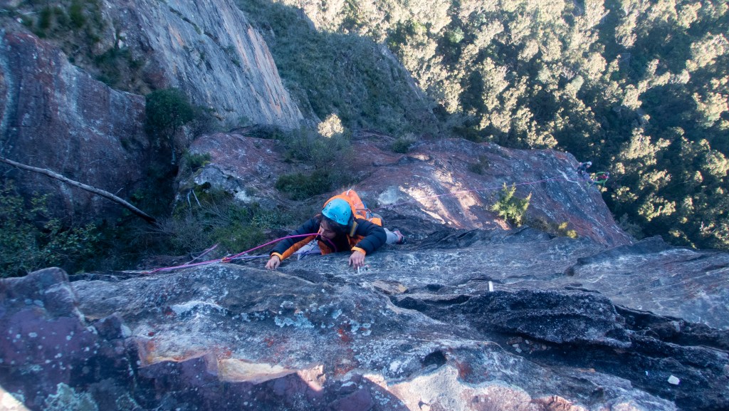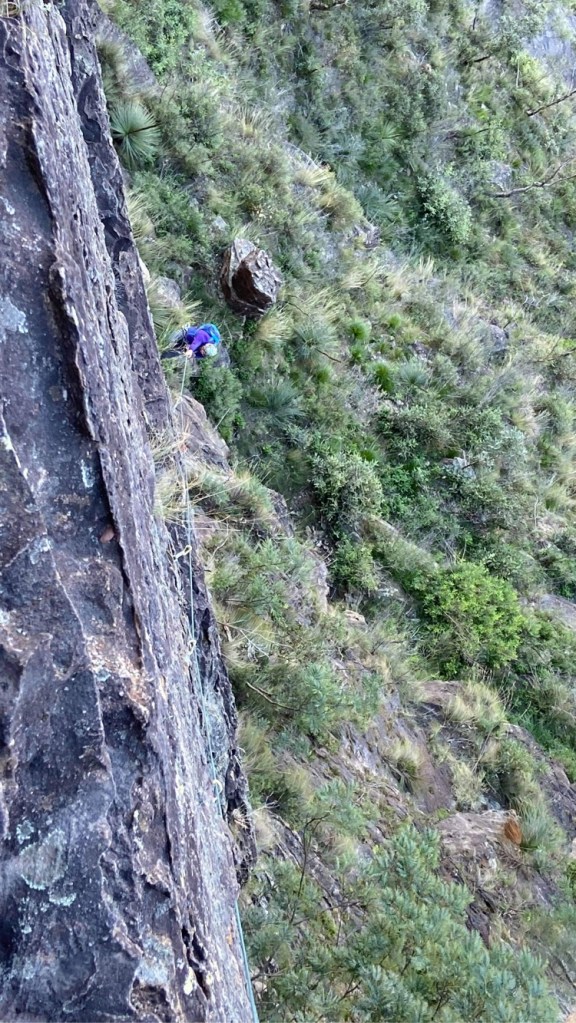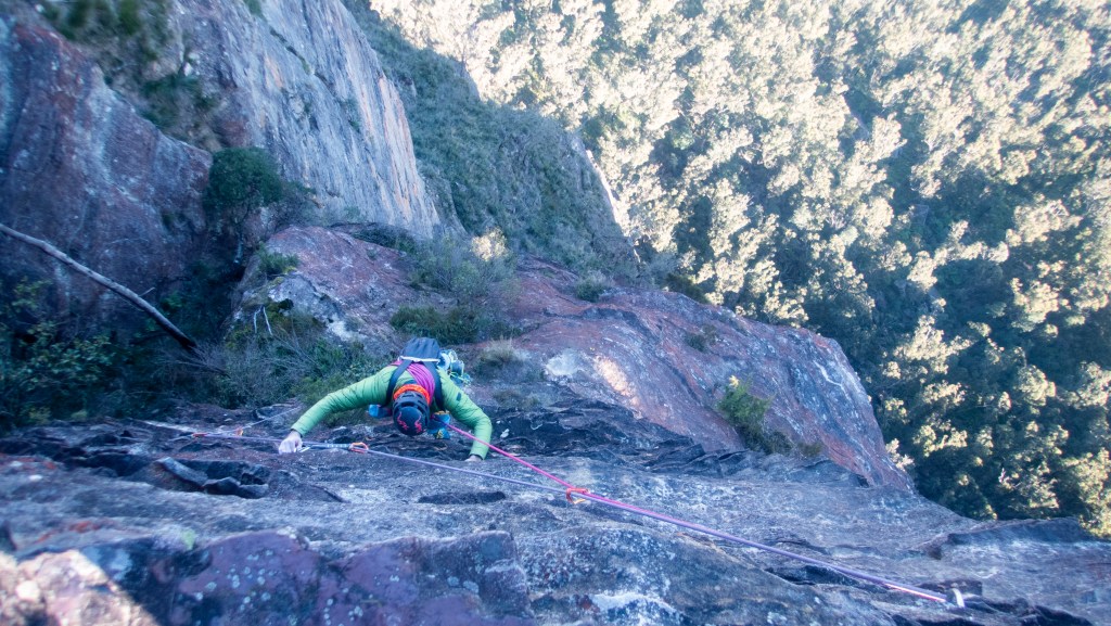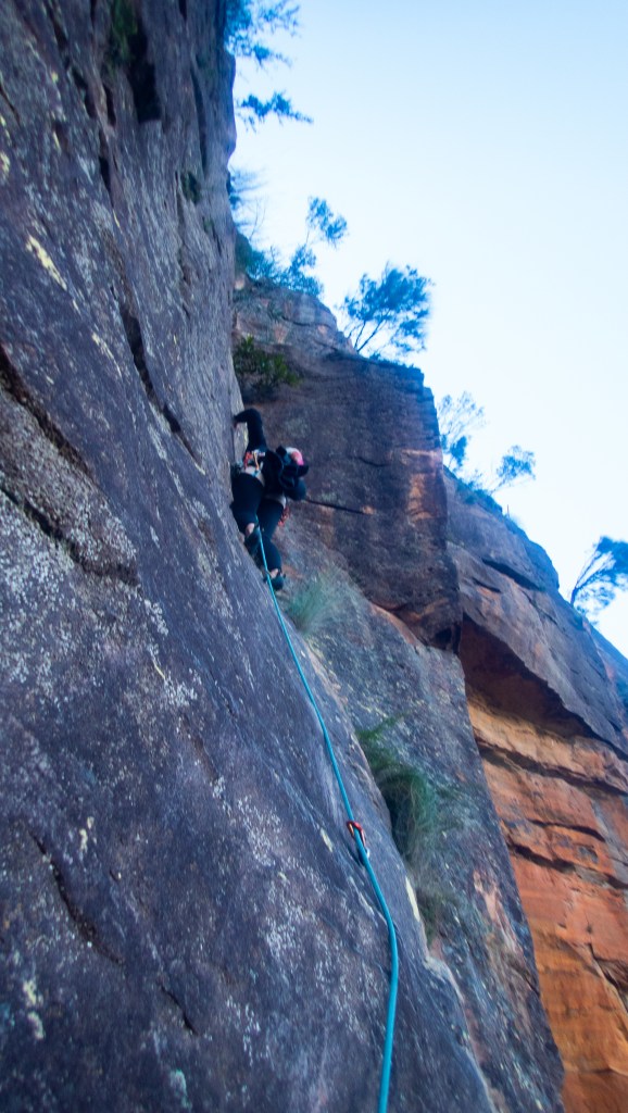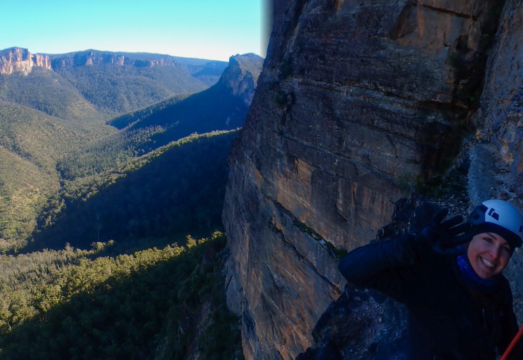 Last year Madie threatened/promised to drag me up Bunny Buckets Buttress. It’s kinda the big easy of the Pieces Pass area. A mega classic grade 18 that wonders up 310m of the Grose Valley clifflines.