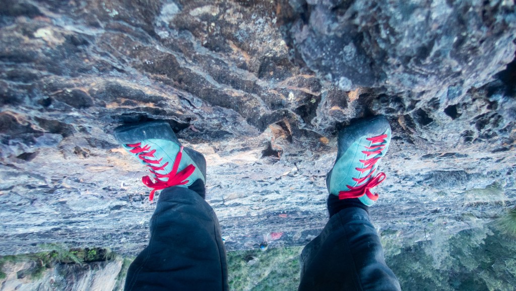 I’d have to say I had a moment halfway up pitch 3 where I was struggling with a move and started second guessing myself and it took Leo shouting encouragement/threats from across the void to convince me to push on. I tried again, got the move easy and continued on.