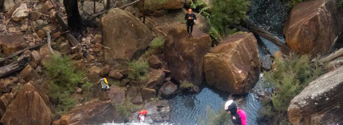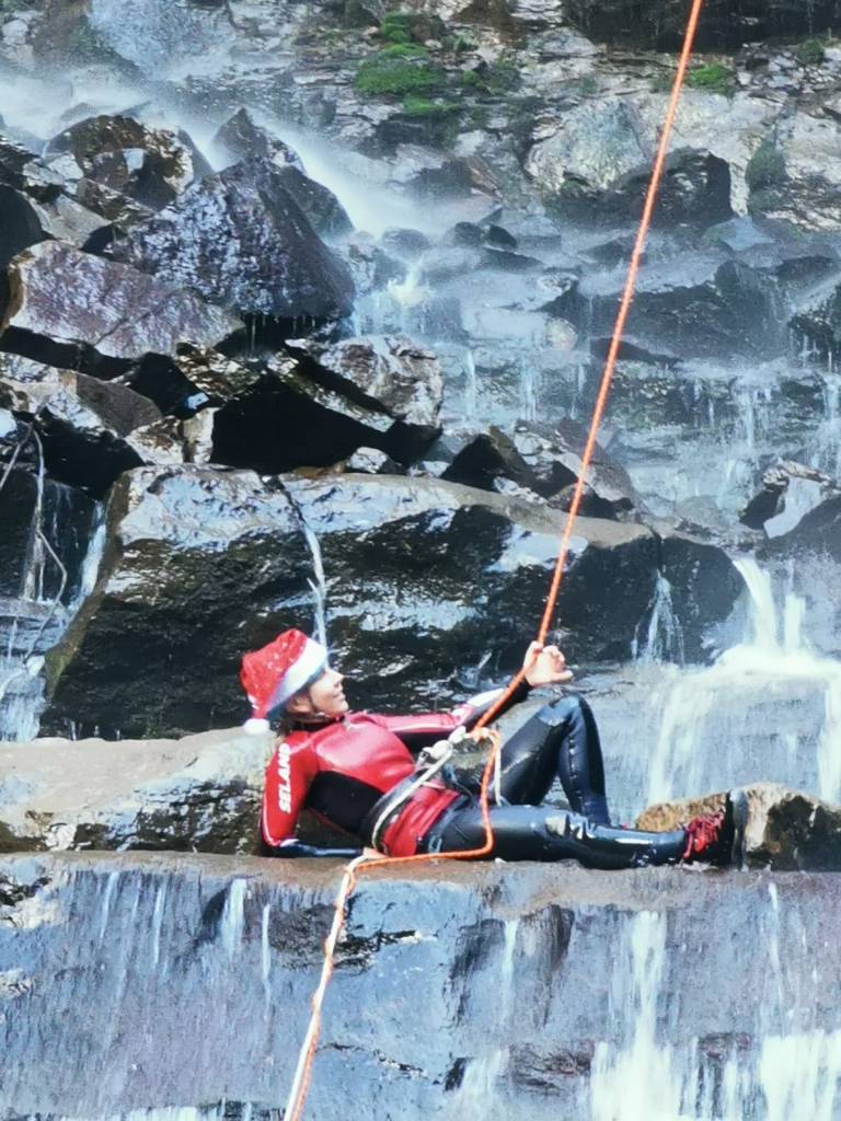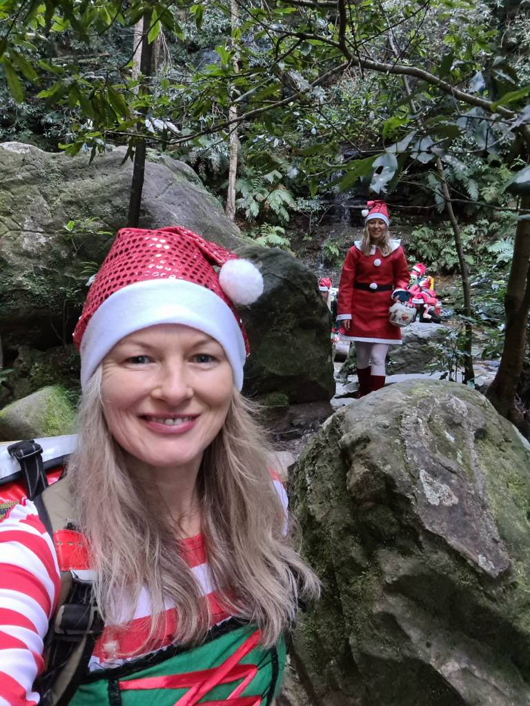 You are probably thinking, That’s a big group, but technically we are not canyoning and only half of us are doing the abseil. The rest are out for a walk and Xmas in July cheer.