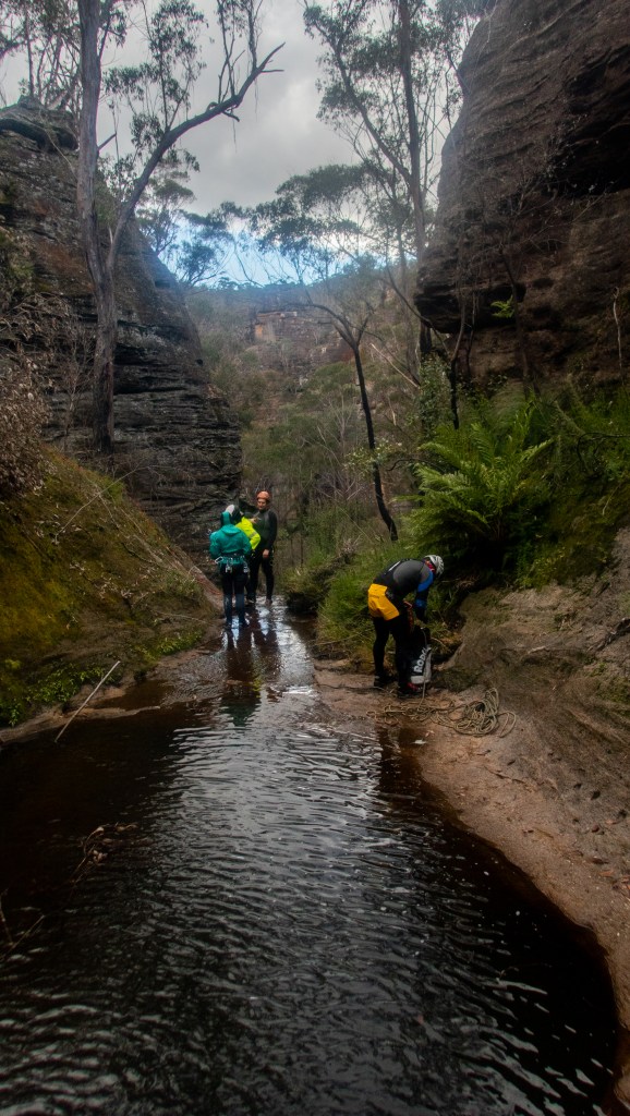Aimee took over anchor duties. We discussed that if I needed to tie the extra rope on at the ledge I’d give 5 clear whistle blasts. Or maybe I discussed that with Kylie. As I said communication broke down. We all put trust in each other and assumed things.