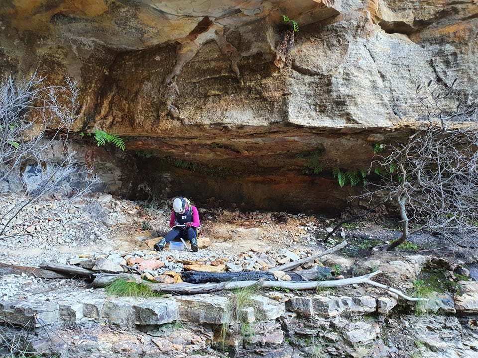 Those not planning to abseil had already continued down the walking track to the base so Kylie moved up to a place where she could signal down to them. The rope isn’t on the ground.