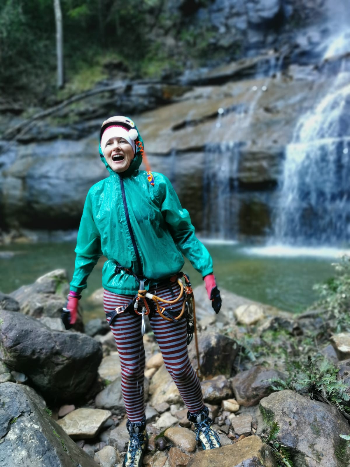 So in the end the falls were about 60m lip to pool, add in the anchor is a fair way back…. Take long ropes.