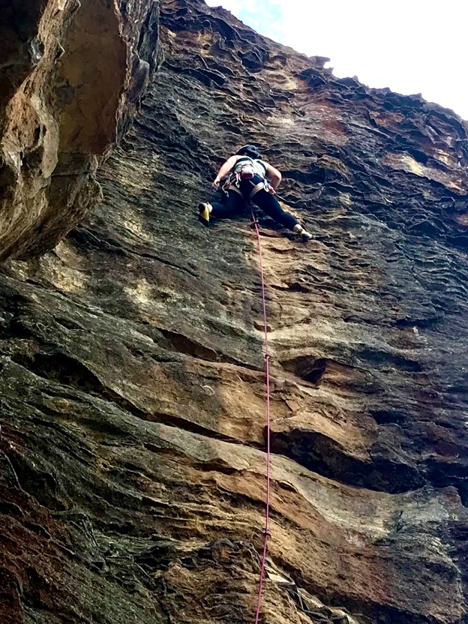 Madie leads up the delightfully run out slopperfest, Soul Sister (18). Leo then leads up making it look easy before I struggle my way up on top rope.
