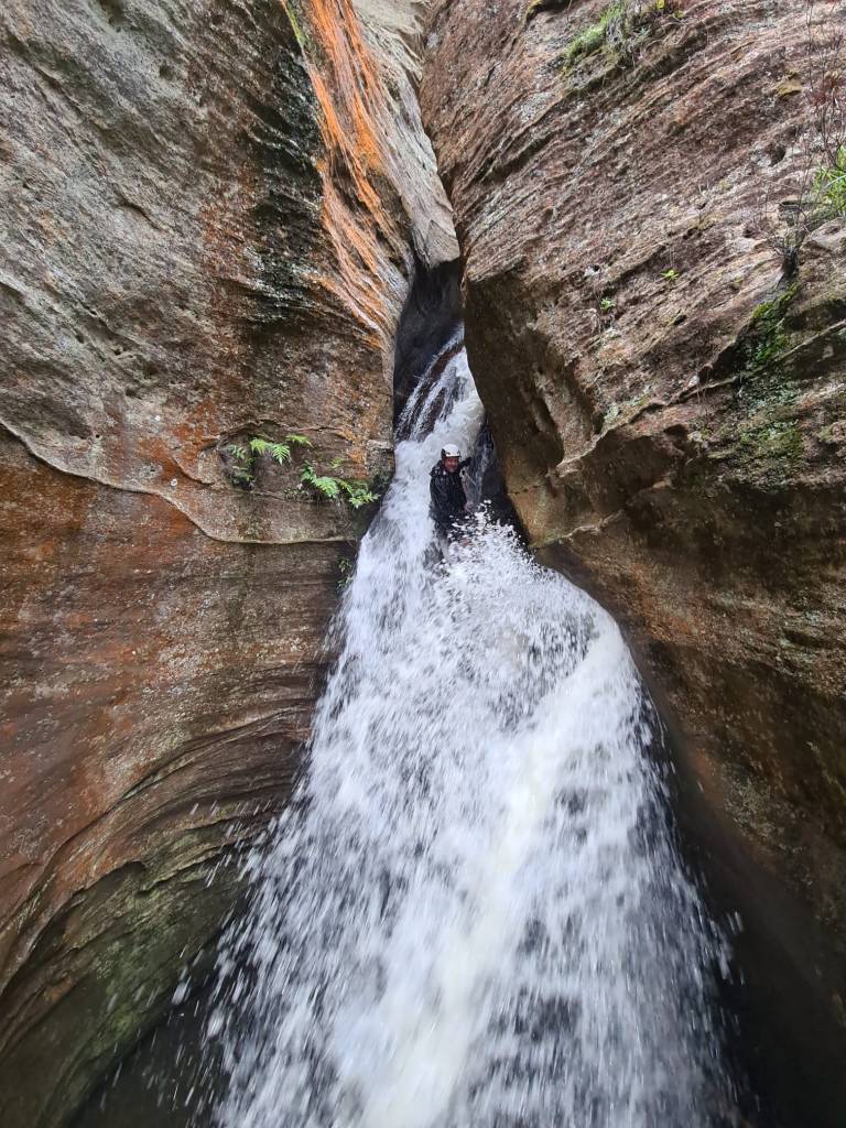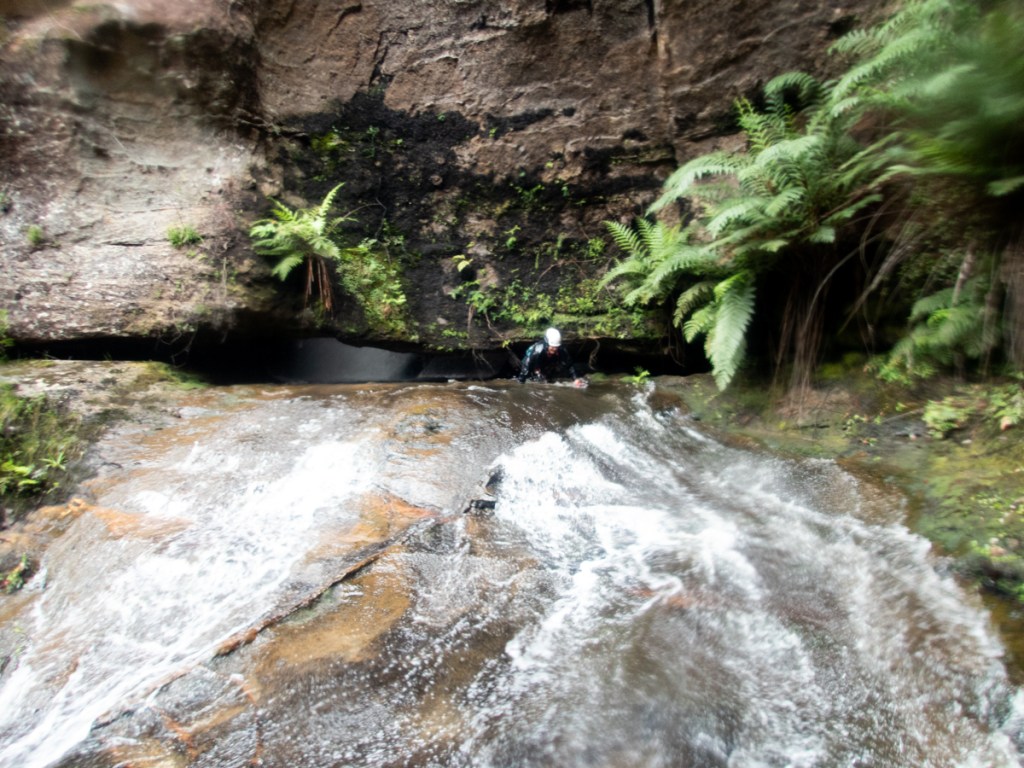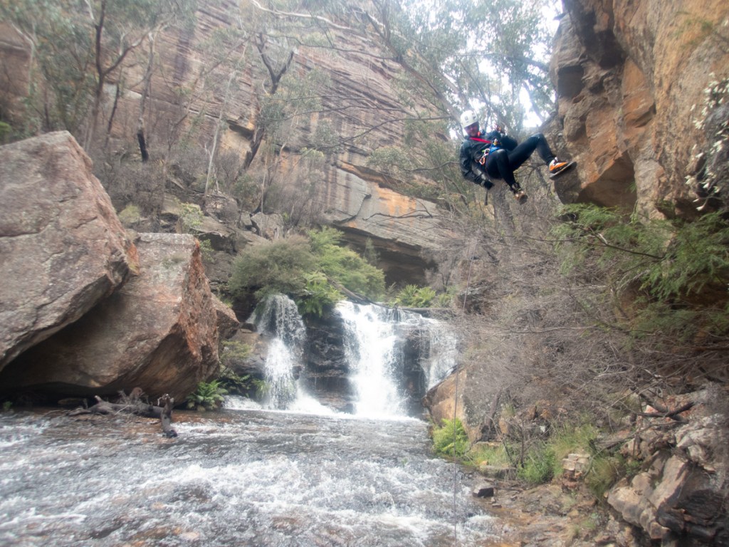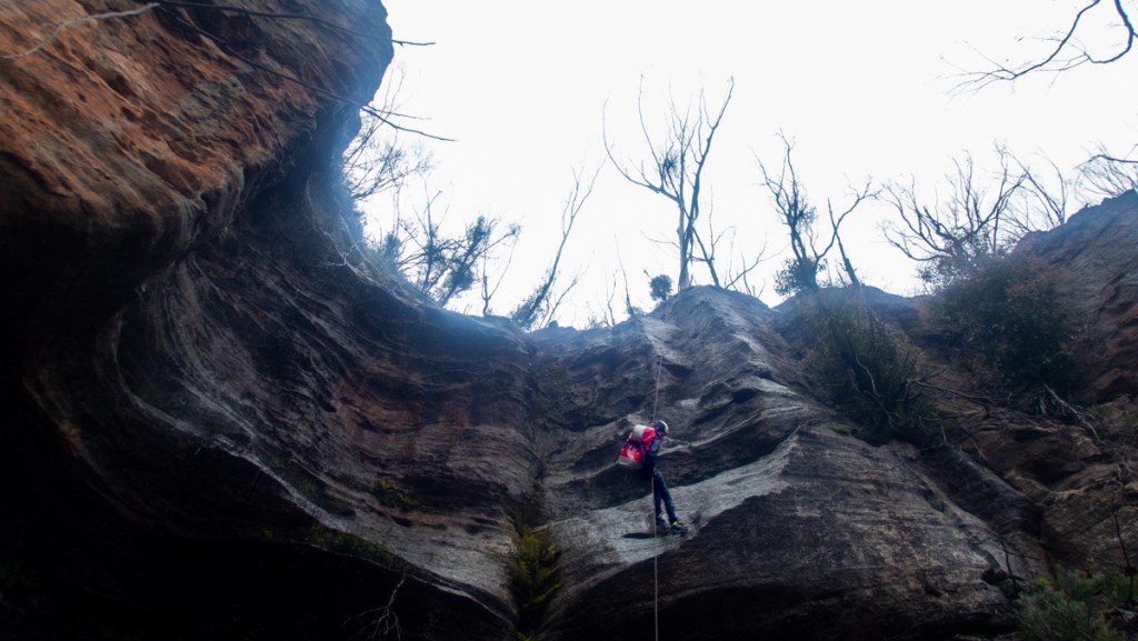 Hearing the roar of the falls from the ridge top sent a tingle down my spine. But I’m a notorious over thinker and despite what some might think I tend to the cautious side so we dropped down the first abseil knowing we had an escape route and wandered down to the point to get a look at the falls.