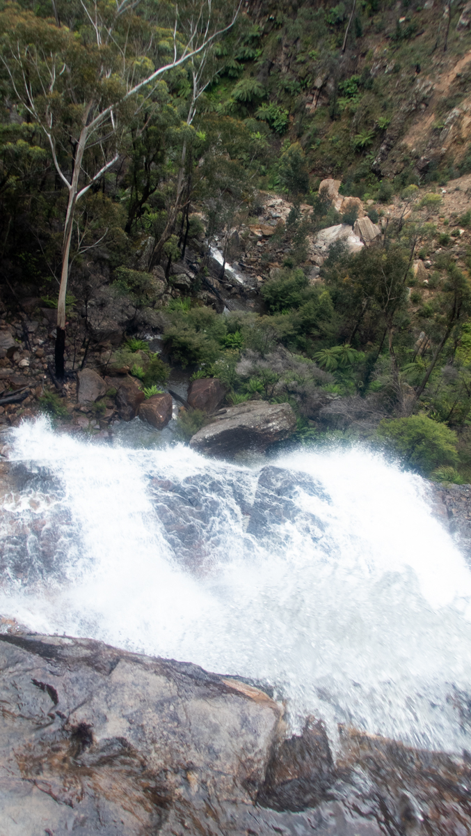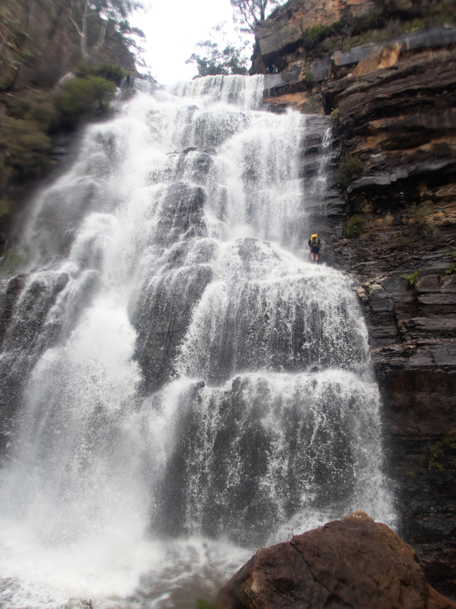 Hearing the roar of the falls from the ridge top sent a tingle down my spine. But I’m a notorious over thinker and despite what some might think I tend to the cautious side so we dropped down the first abseil knowing we had an escape route and wandered down to the point to get a look at the falls.