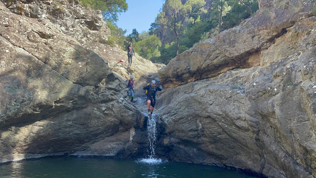 Things are a little confused, there’s a large group in line of sight with us in bungonia canyon and so whistle signals are getting a little crossed.
