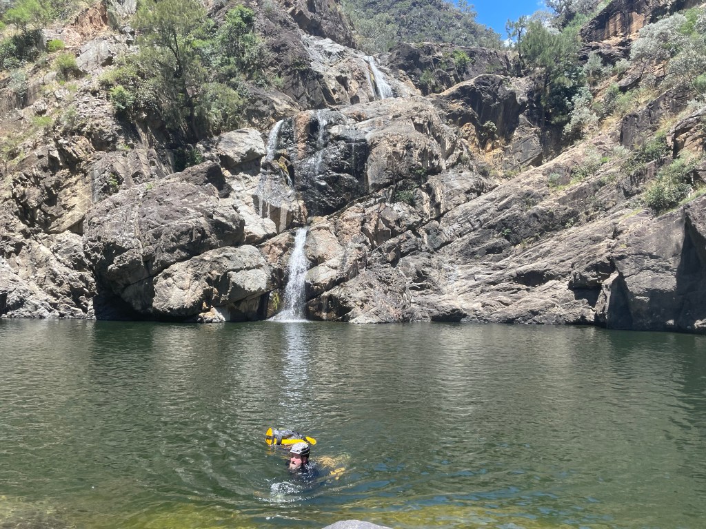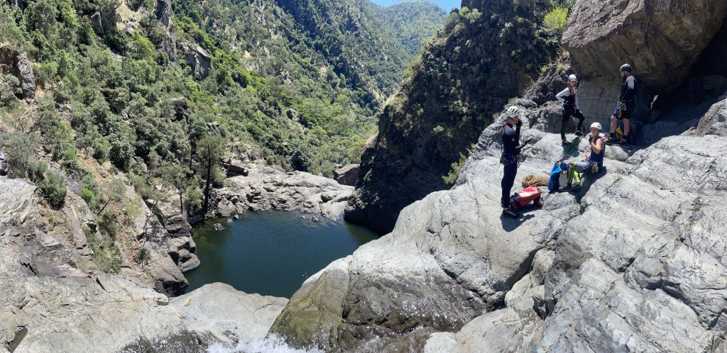 I’m sitting the the spray of the waterfall longing to get into the pool below but I’m anchor bitch a going last.
