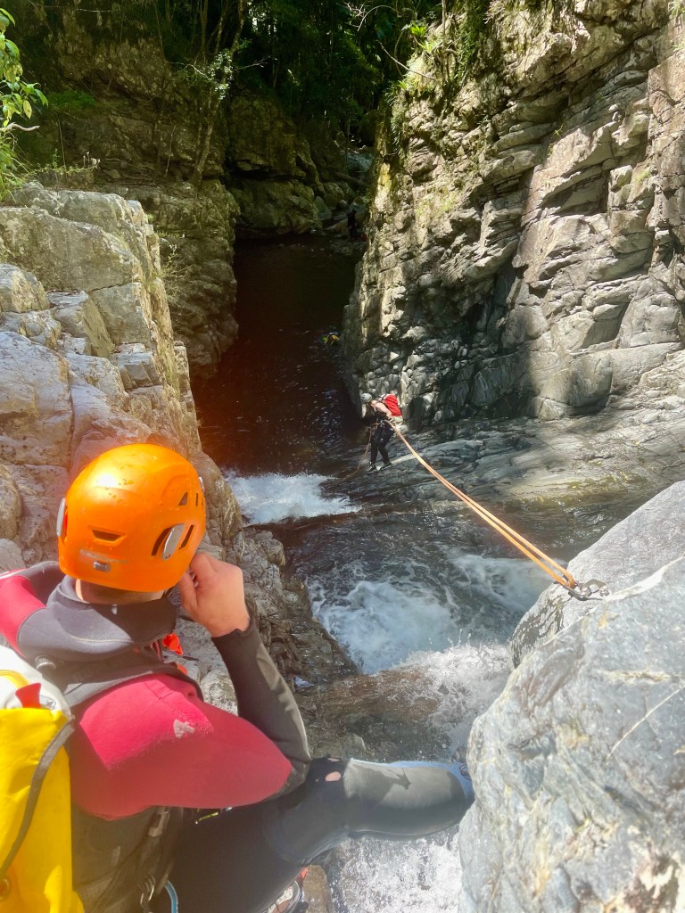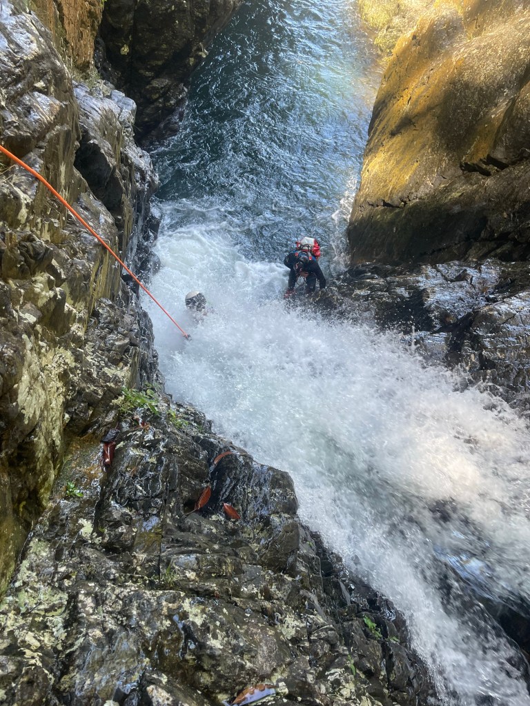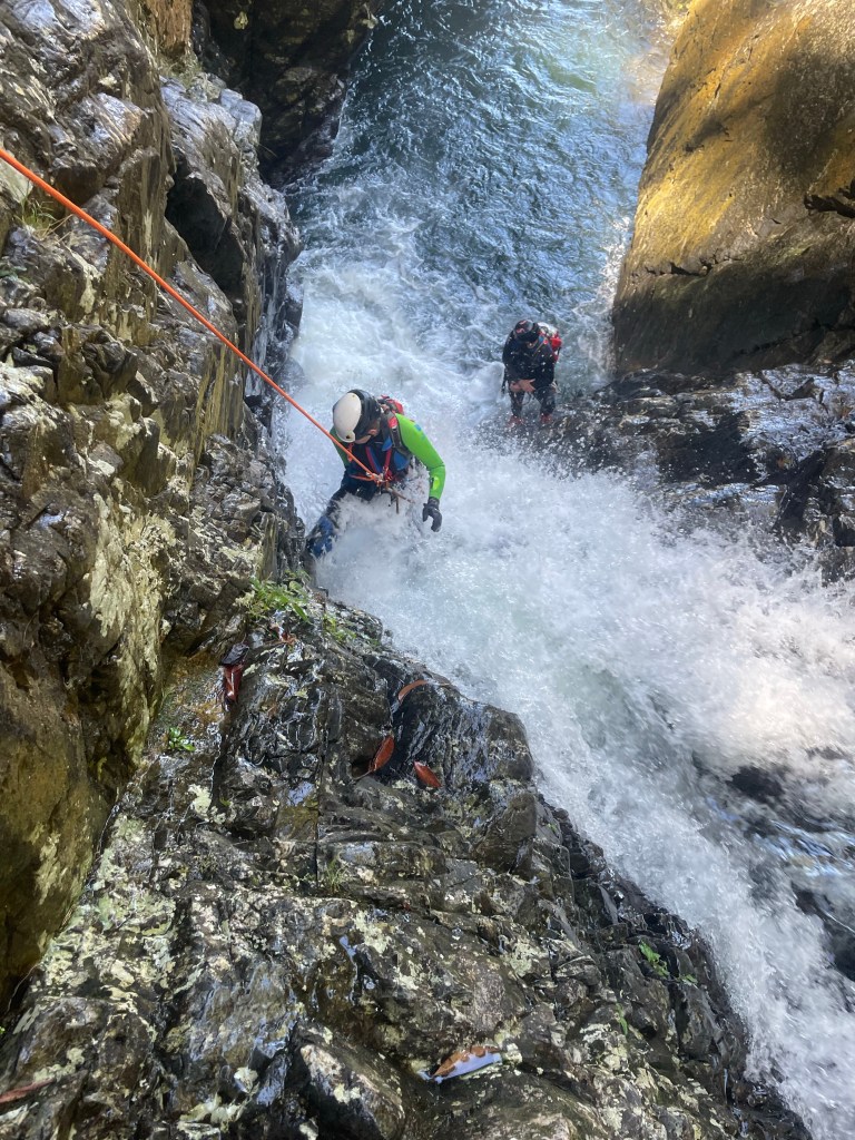 And once we got to the junction with the “standard” entry we reversed back up the Cork Screw section and found a break in the cliffs to scramble up.