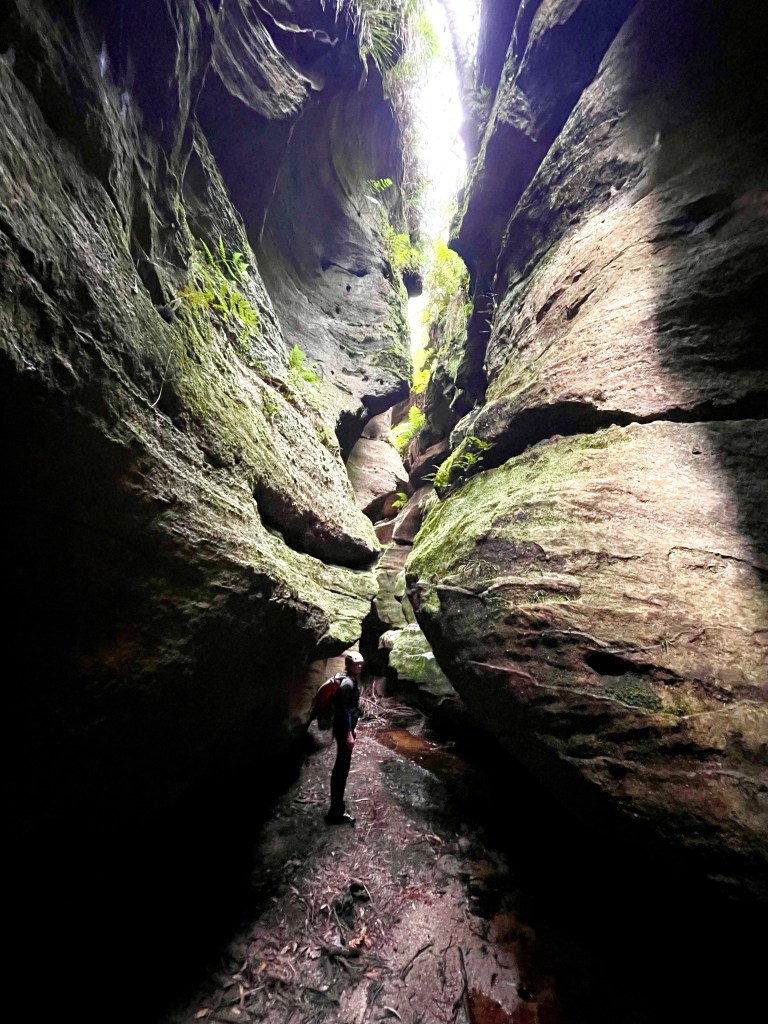 Let’s just do the top and scramble out the Cork Screw entrance. Says I. That way it’s only a 2km walk back up the highway and we can do that first.