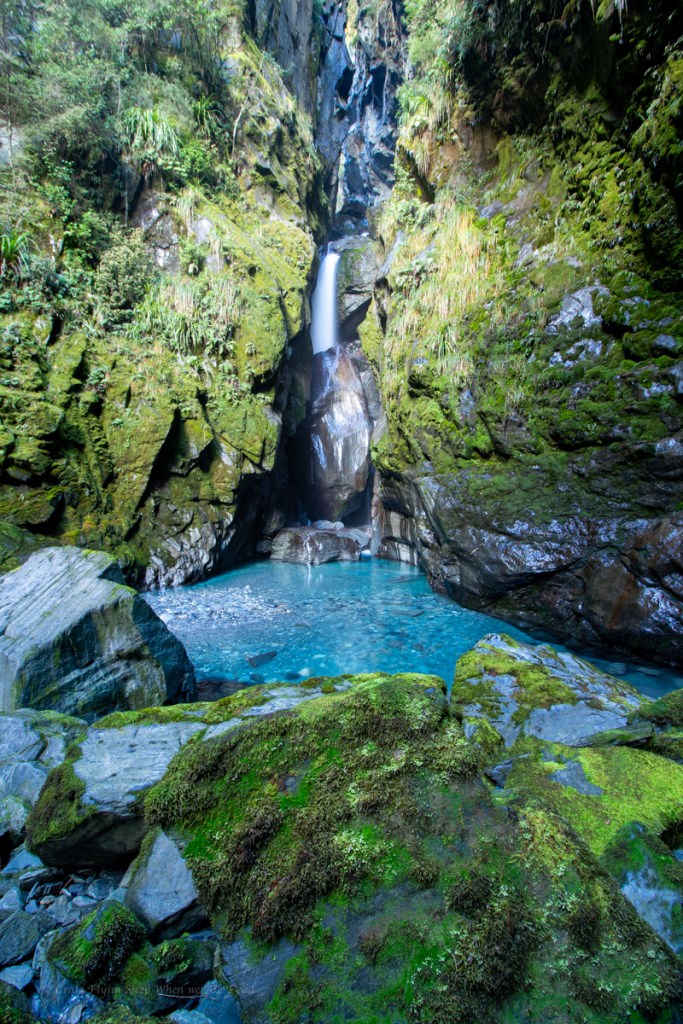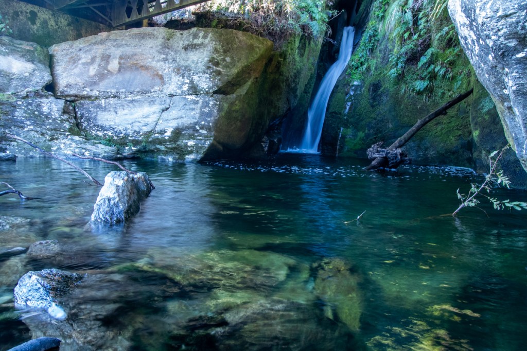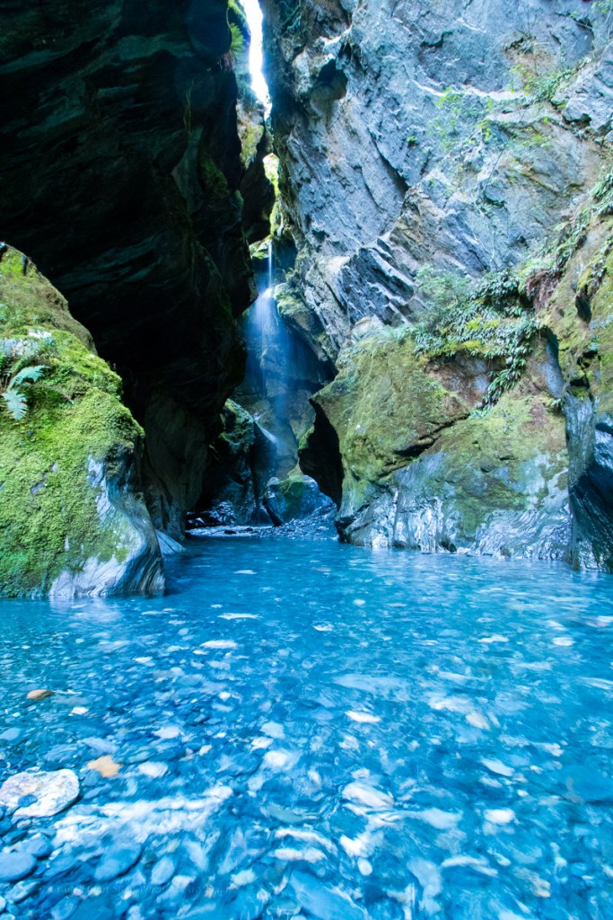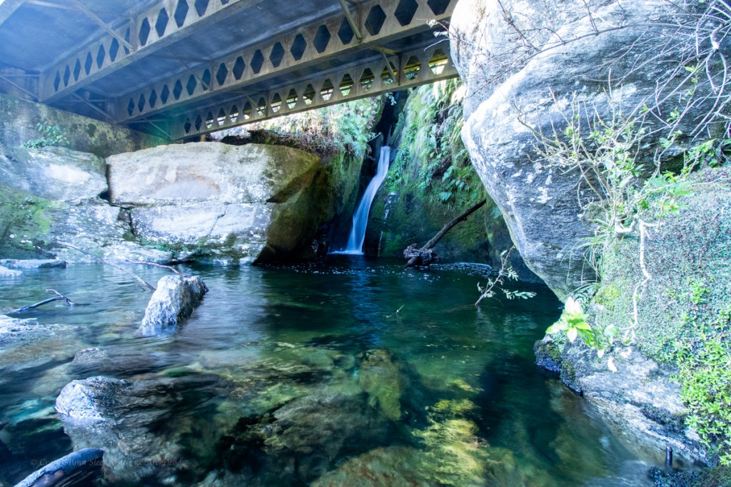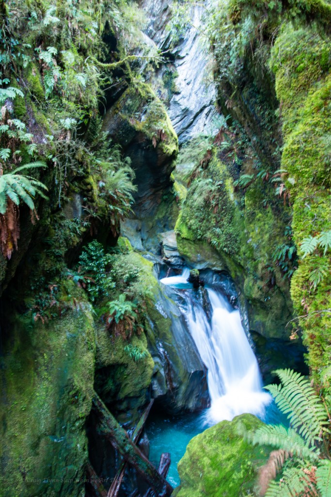 I think we gained about 200m of elevation from the road. A bit after 3pm we get to a point where we had a a reasonable view into the slot where 3 streams of the falls converge.