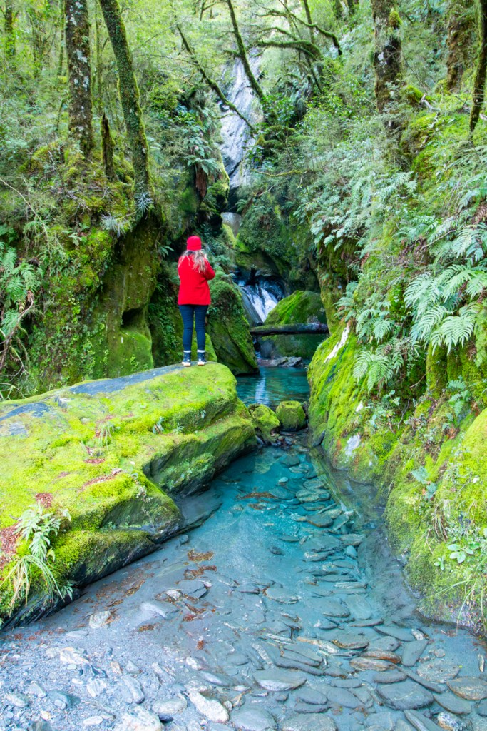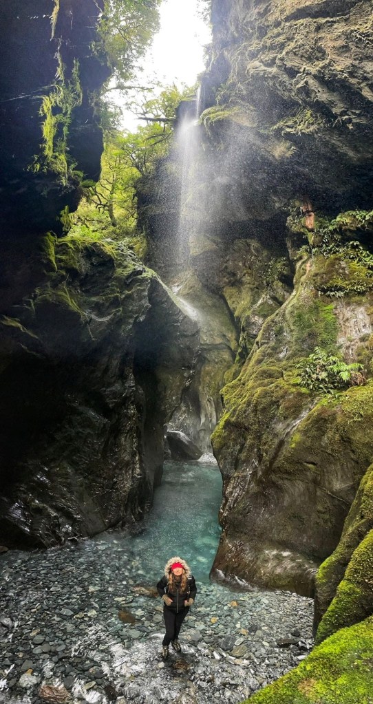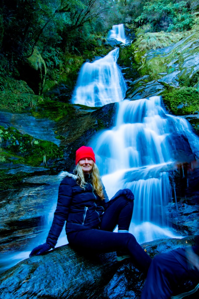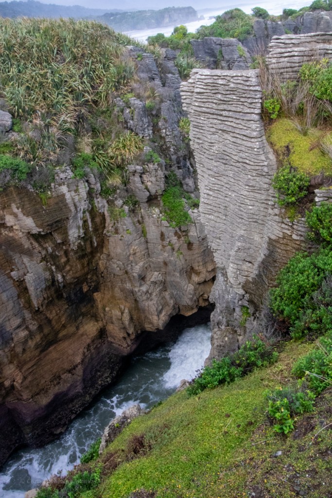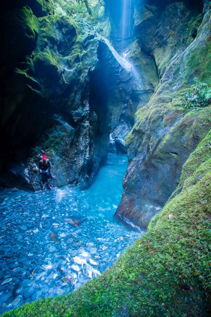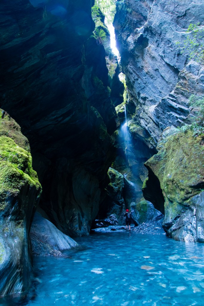 I think we gained about 200m of elevation from the road. A bit after 3pm we get to a point where we had a a reasonable view into the slot where 3 streams of the falls converge.