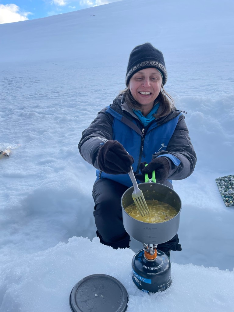 Well, Sonya, Kylie and I shoed Kris and Hywaida decided it was icy enough to. Just use crampons. This proved a wise choice and one we’d all adopt for the rest of the weekend.