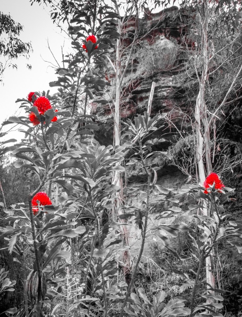 We are already impressed. the canyon opens up a bit and Waratahs line the banks.