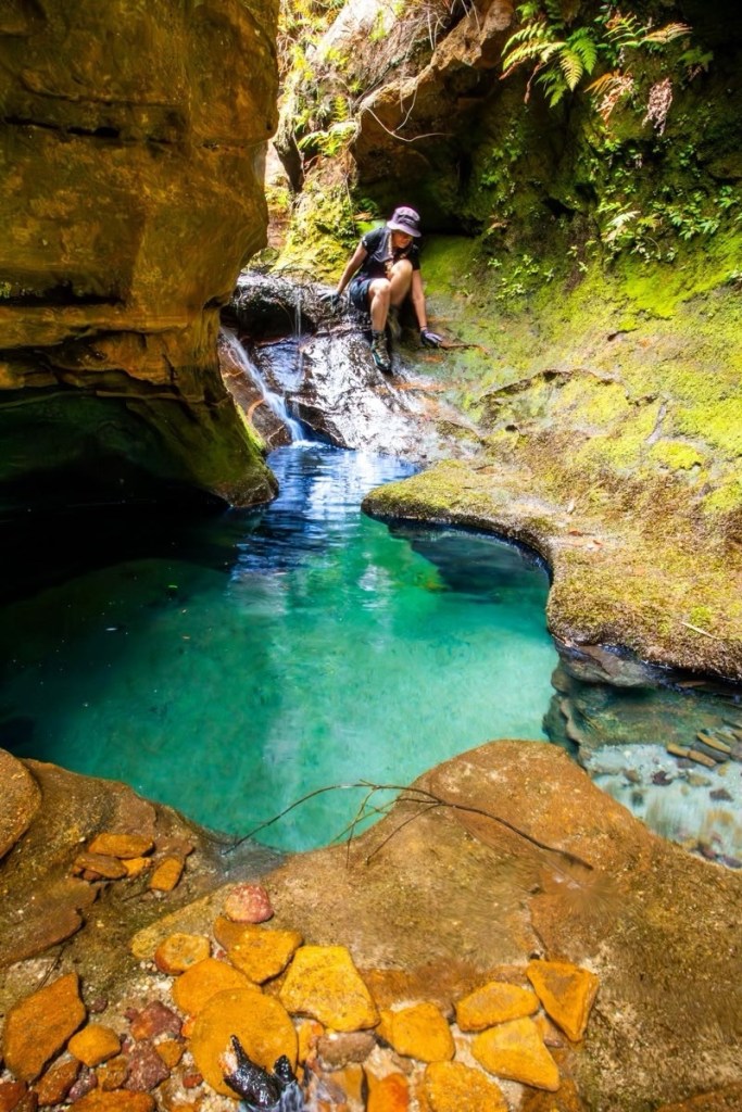 We phaff about with photos for a bit, we have to pool all to ourselves., but then push on downstream to the next canyon section.