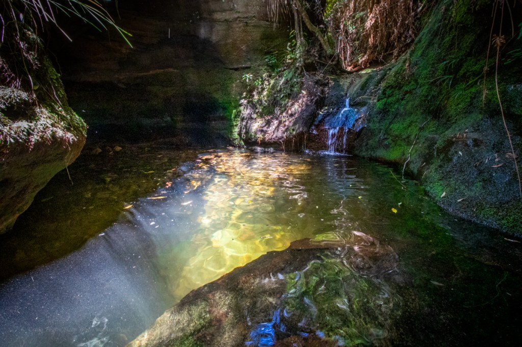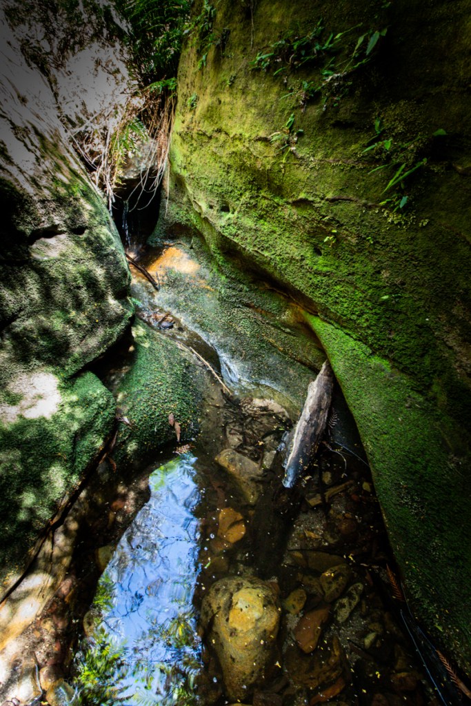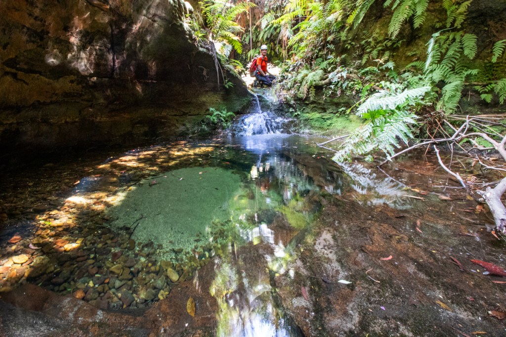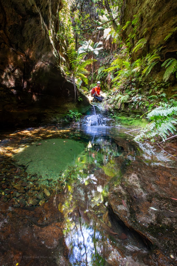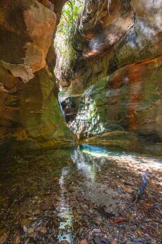 It starts with a bit of promise, with a crystal clear pool below a small down climb as the cliffs close in.