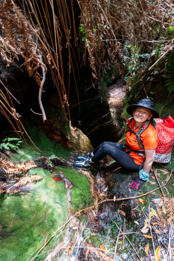 We gain the creek. Scrub and dead fall awaits. We hadn’t saved ourselves as much creek bashing as I hoped but we make our way down to the upper section of canyon.