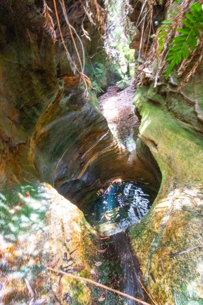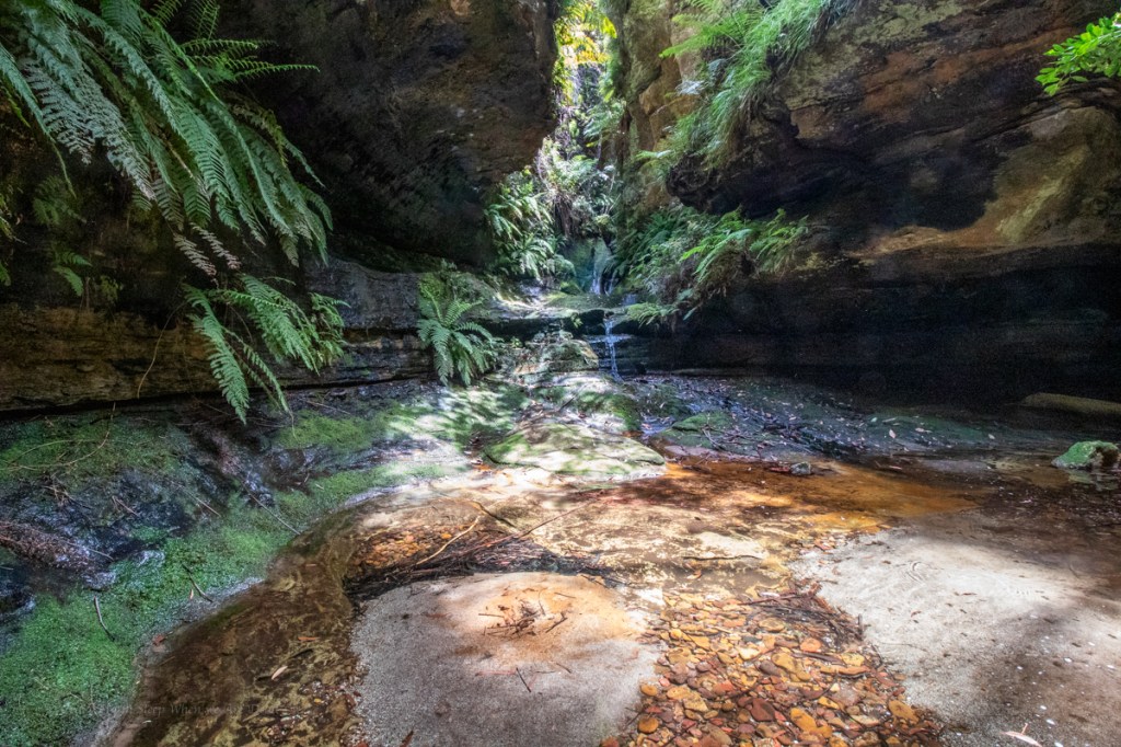 Once down I thought I’d try the duck under. It’s a bit deep to be called a “Duck Under” it’s a full on swim under and it’s silted up making a tight squeeze.