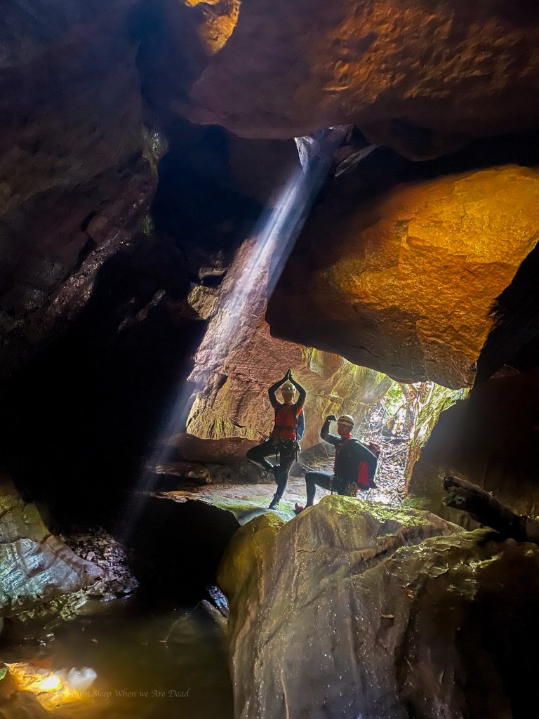 The plan is to head down said creek to an exit Kylie had mapped out opposite gateway canyon. I’m hopeful this section is similar to the bit below HITW and we can just float with the current.