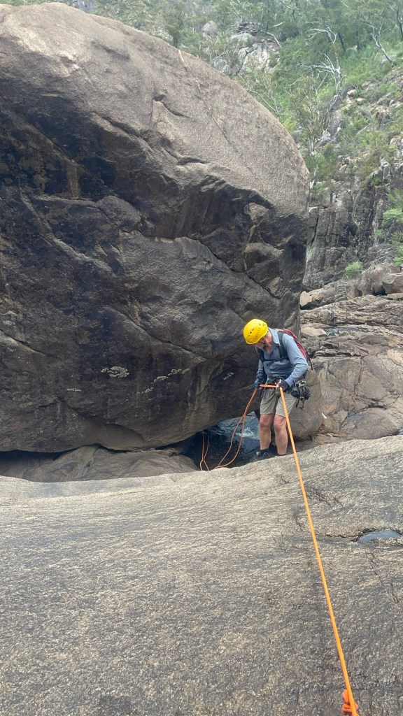 The rest of us get down no drama but Kent is reluctant to pull rope from directly below.