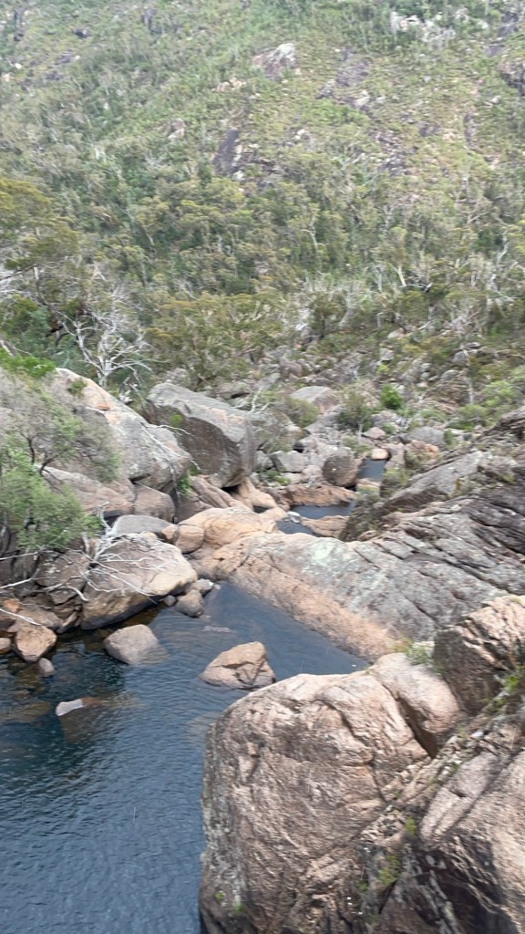 We meet up and waste no time walking to the end of the fire trail and making our way down to the upper falls.