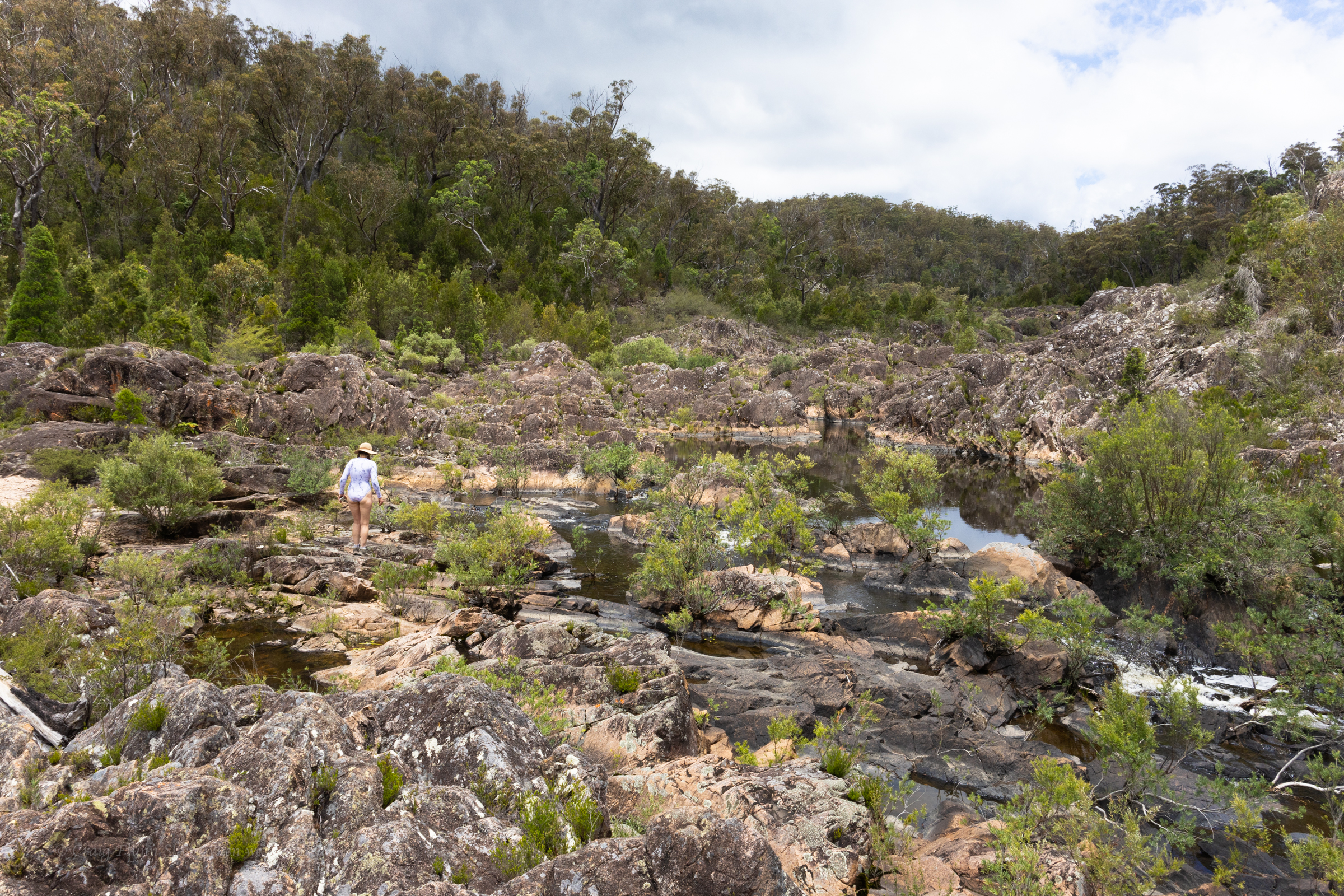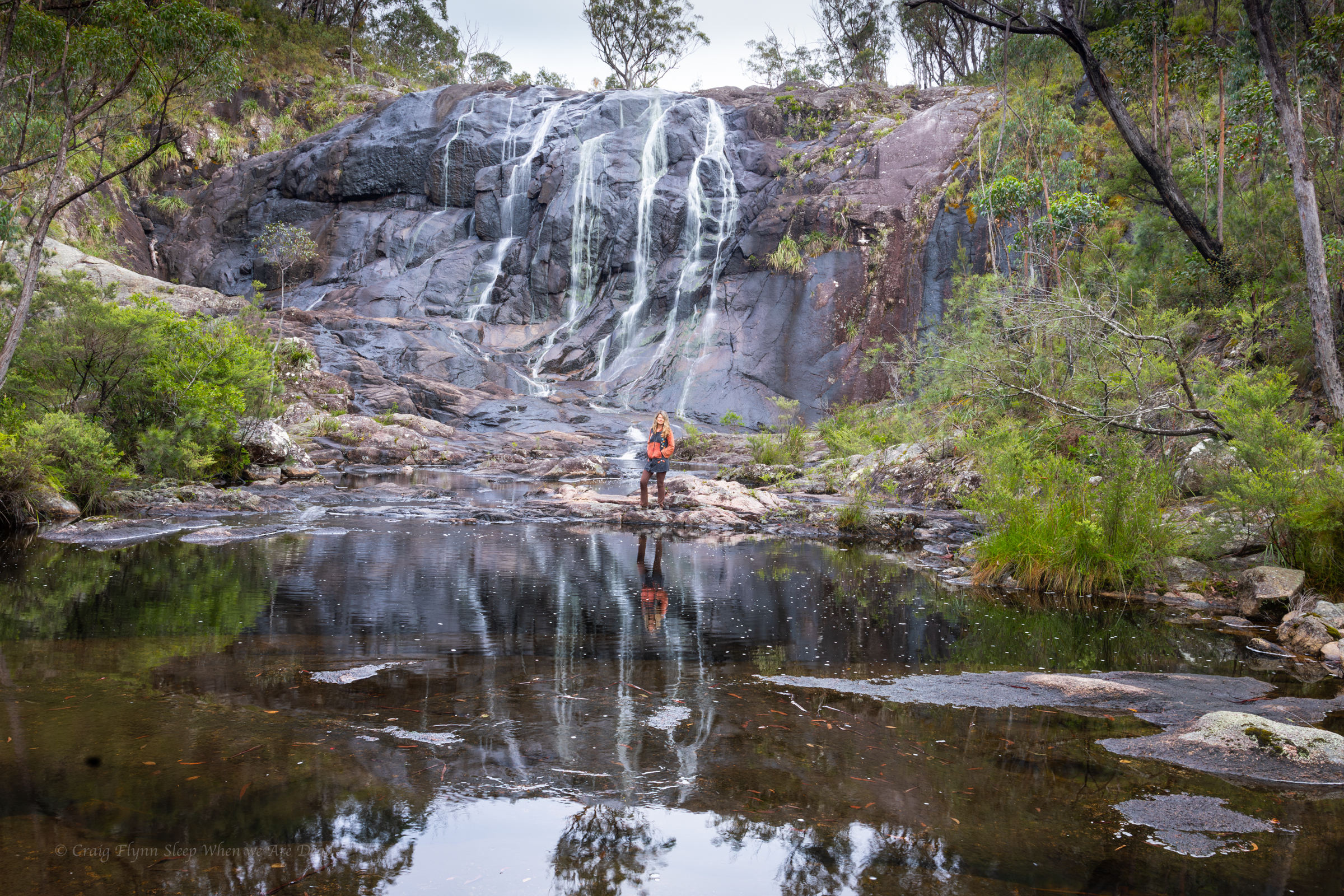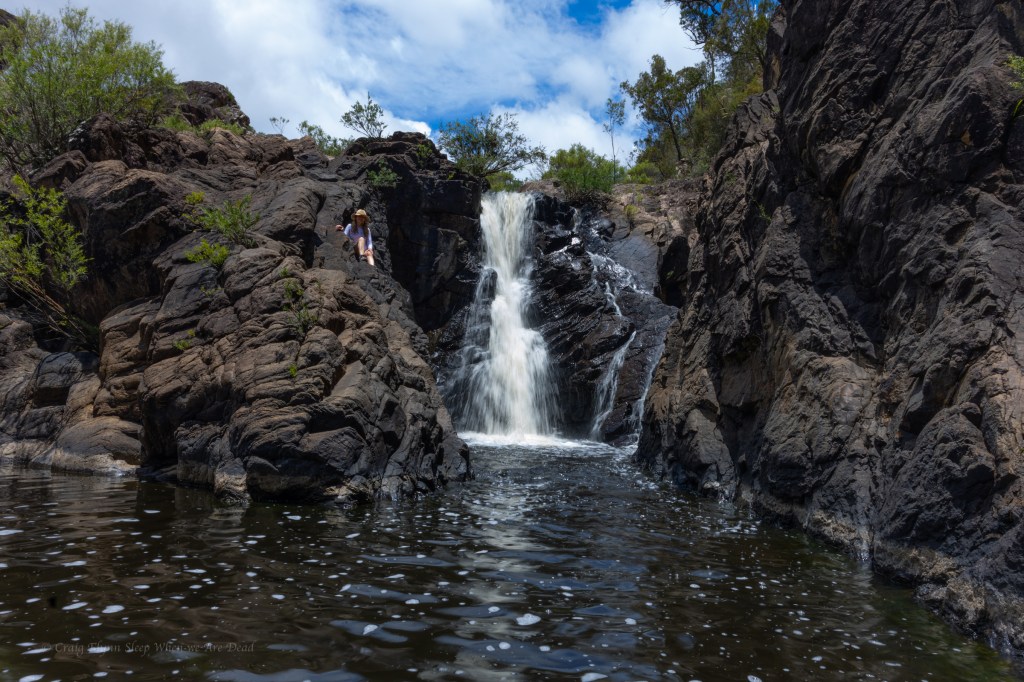 After a pleasant morning at Bald Rock the day has heated up and so we drive past the campsite and head to the main falls.