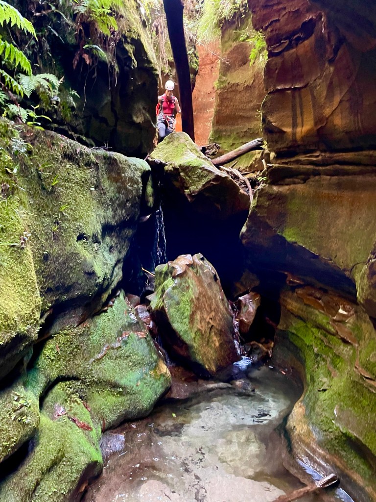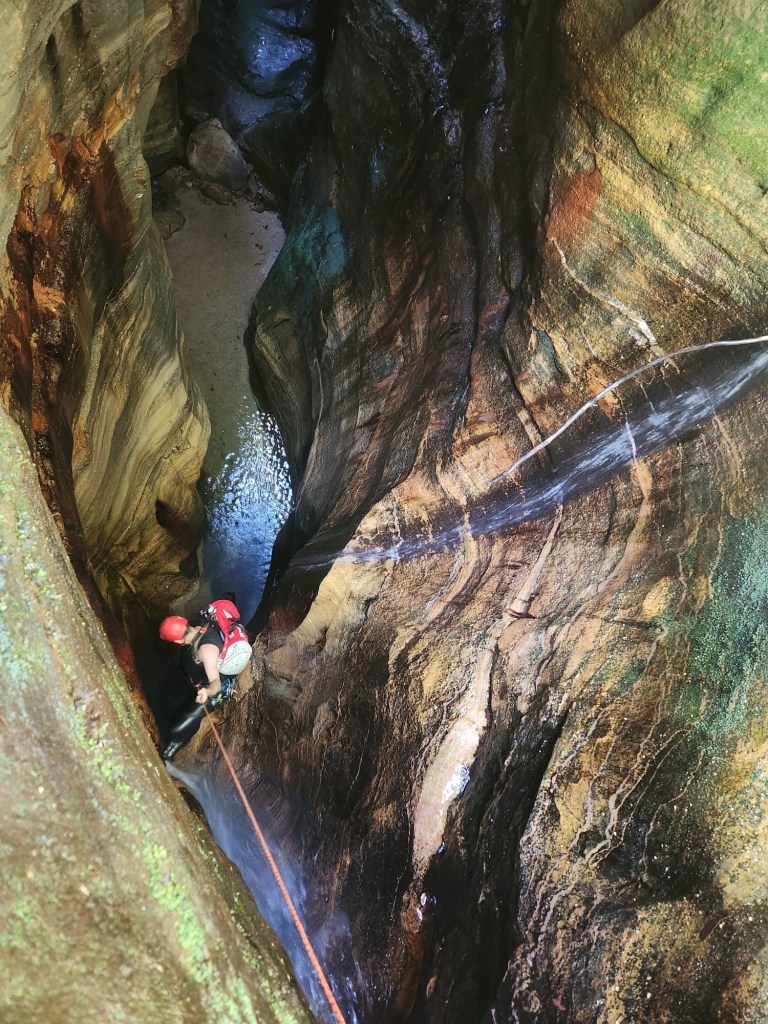 Most visitors to here avoid the canyon bit and keep their feet dry by scrambling down the nose.