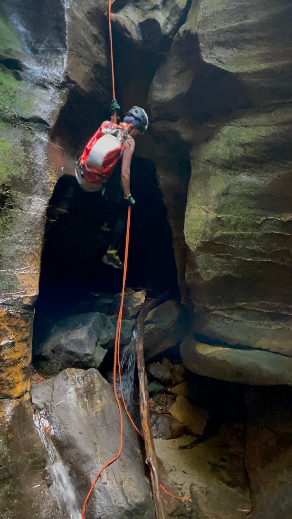A big Saturday trip had been foiled by thunderstorms and we just needed to shake out the cobwebs but couldn’t be arsed repacking ropes and stuff so thought why not have a look at some non abseil sections in Popeye.