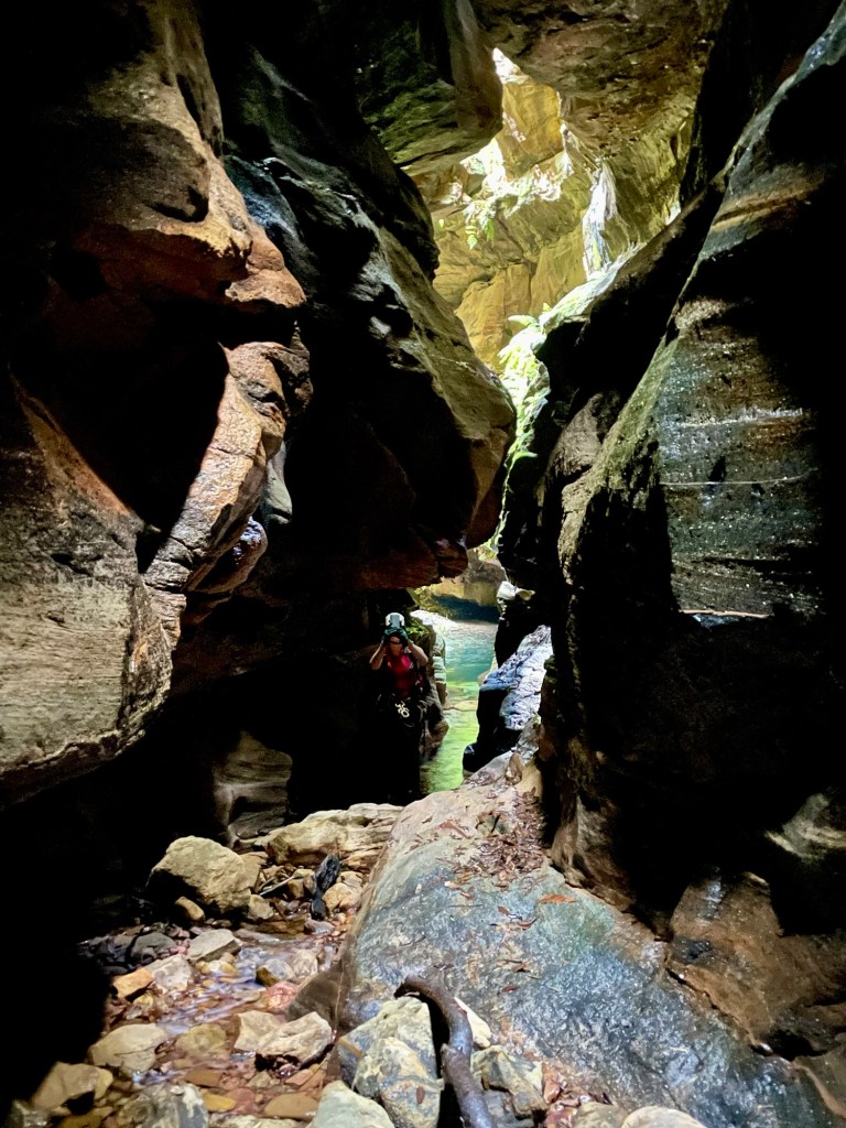 We phaff about with photos for a bit, we have to pool all to ourselves., but then push on downstream to the next canyon section.