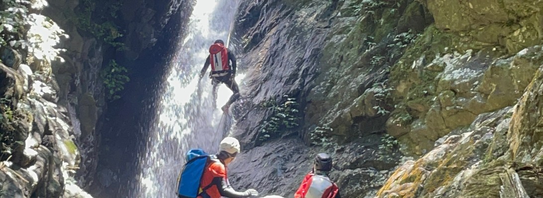 The abseils are varied too, from easy slabs beside the flow, to stepped ledges through it.