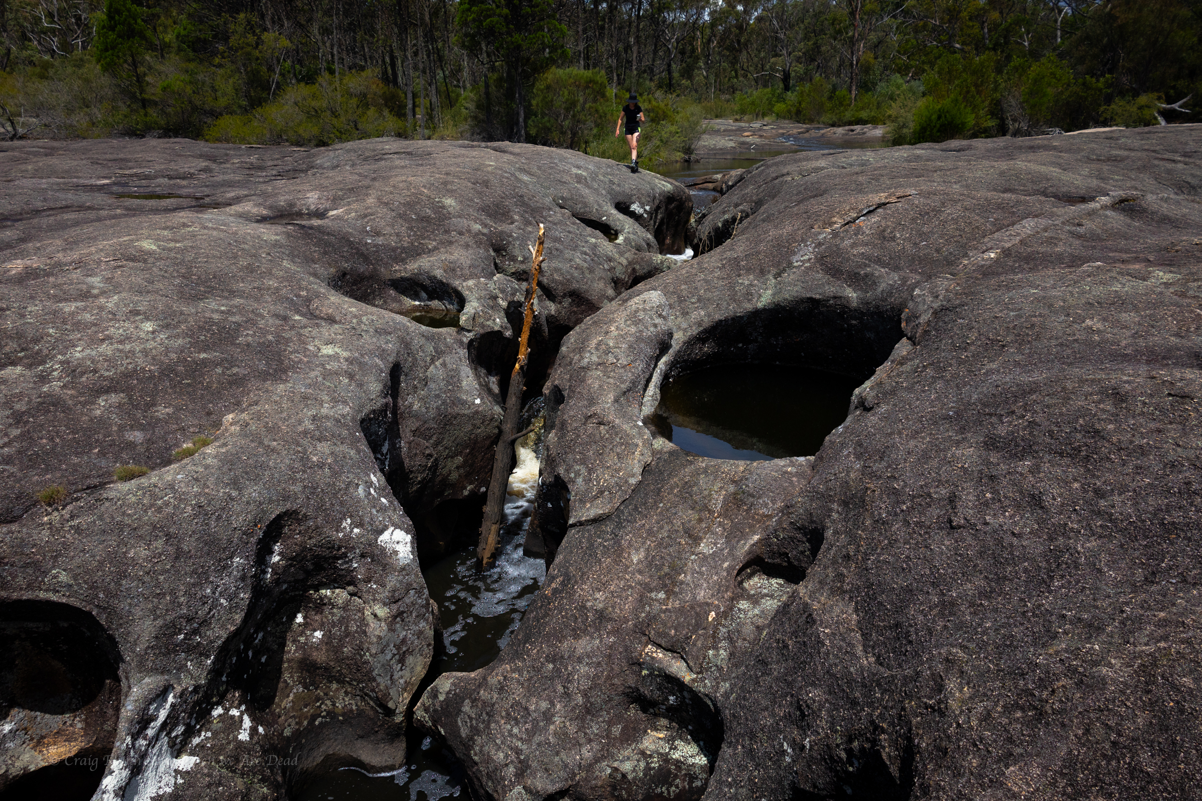 A short drive from our camp took us up into the surrounding hills. The car park is well signposted and gives access to both the Underground creek trail and Dr Roberts Waterhole.