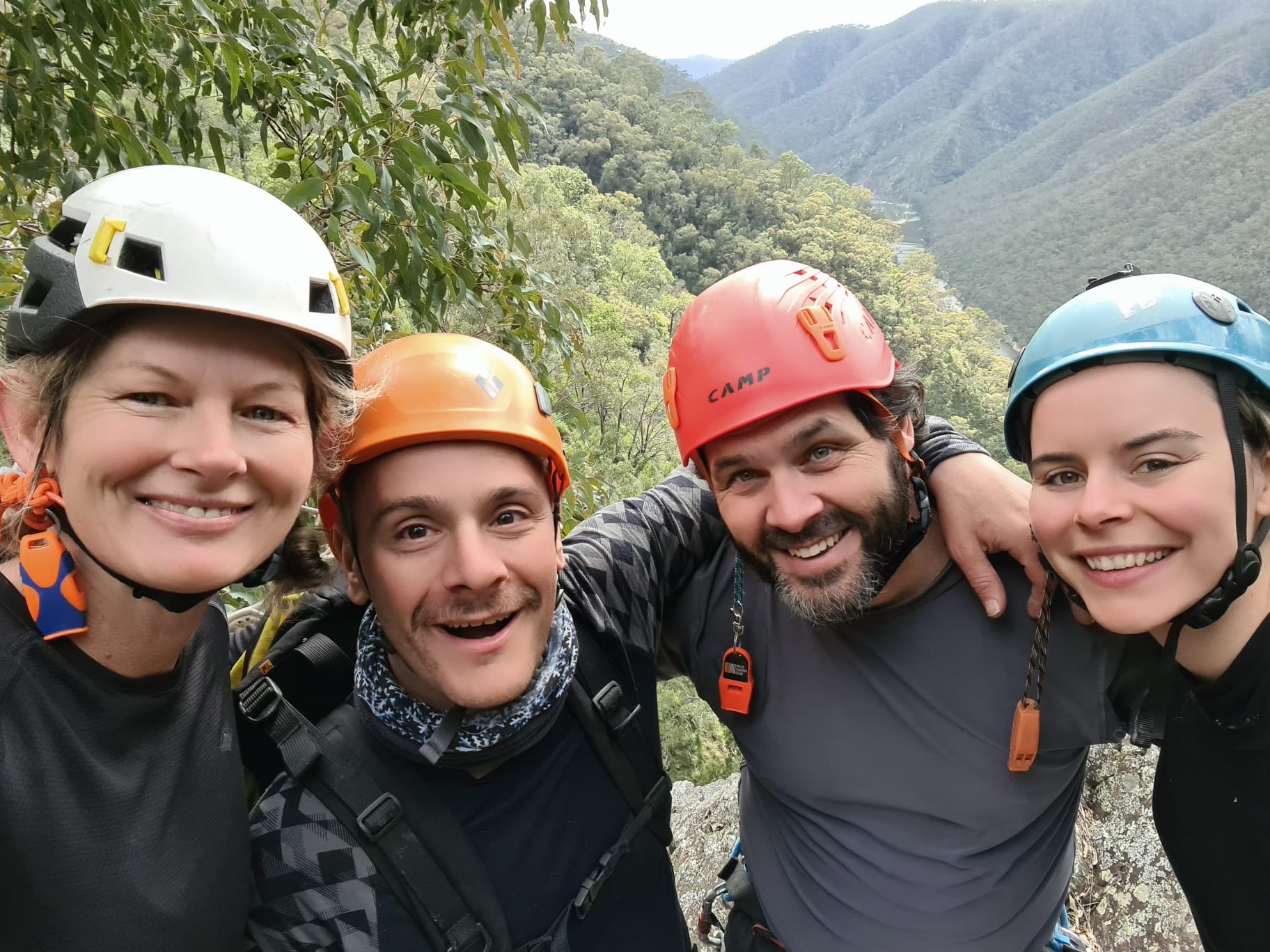 A bit under 2.5hrs car to car with a large group and giving Muz some abseiling refreshers along the way.