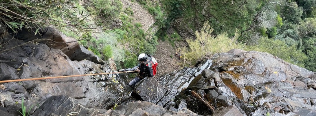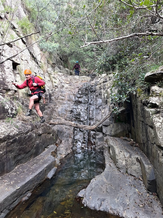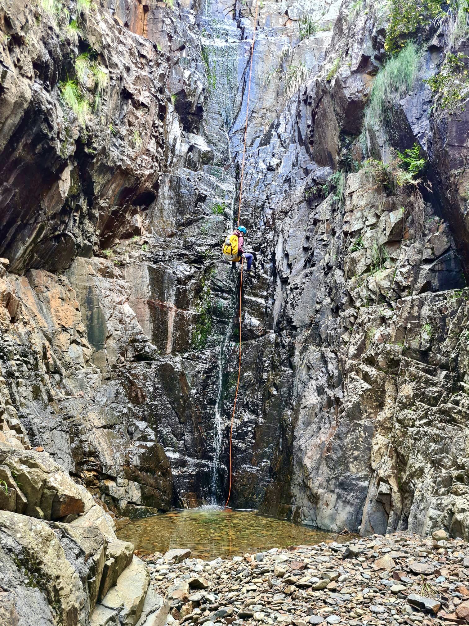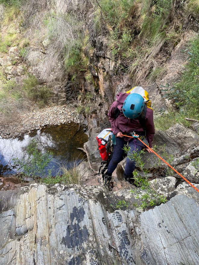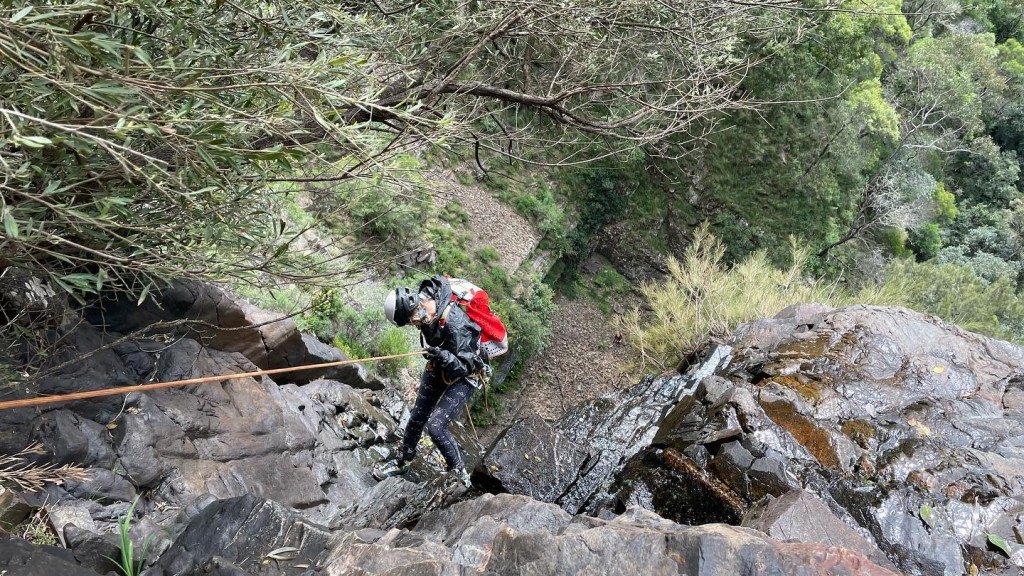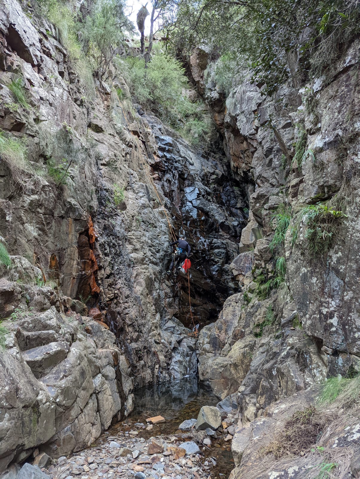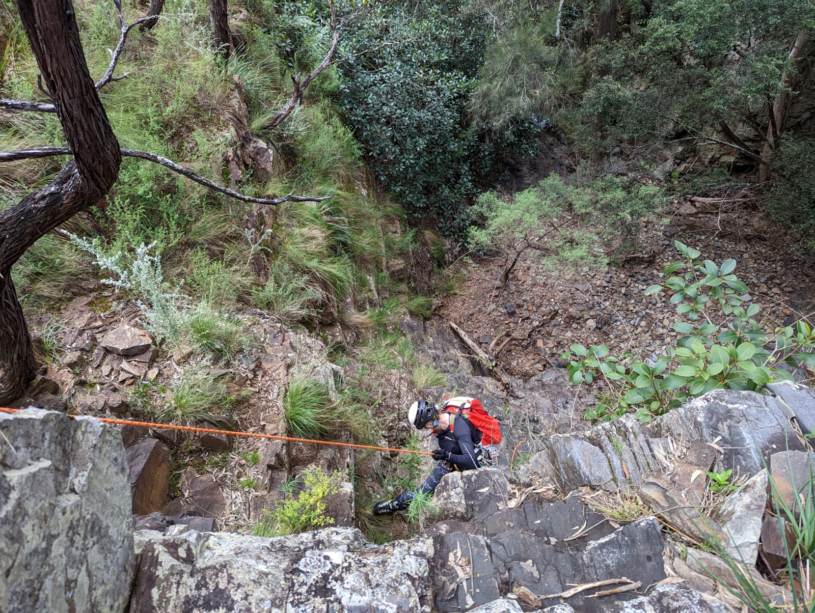 There is a pleasant bit along the ridge before we drop back down through the scrub to our first anchor point above a 30m abseil down through one of the highlights