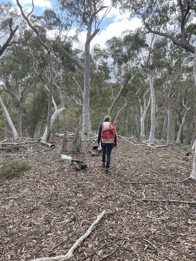 After an easy amble along the fire trail amid banter and giggles we head into the scrub to follow a ridge down into our gully