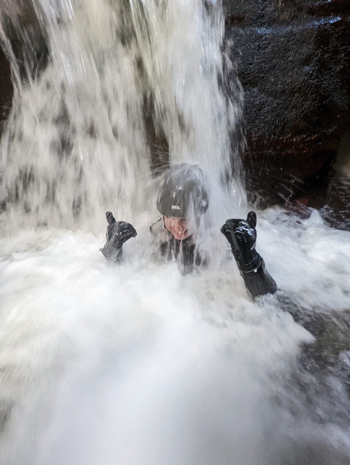We were now in the exit creek but soon came to the small waterfalls that would be the main challenge of getting out.