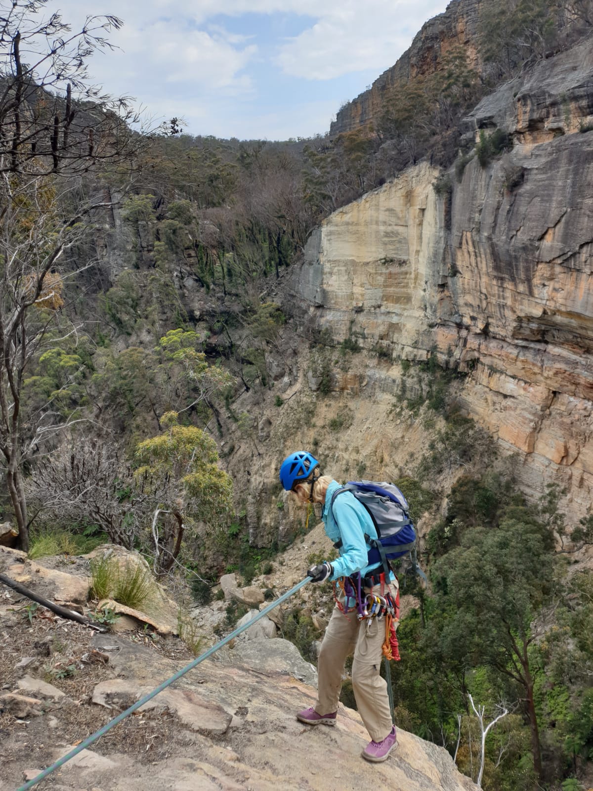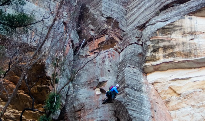 We descend the upper cliffs without it really. Canyoning up and then it opens out again
