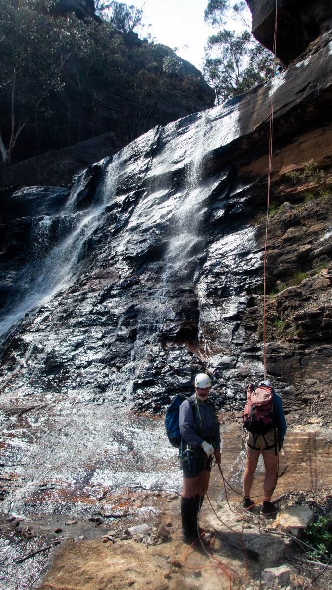 A couple of dry abseils gets us down to the shelf above the falls.
